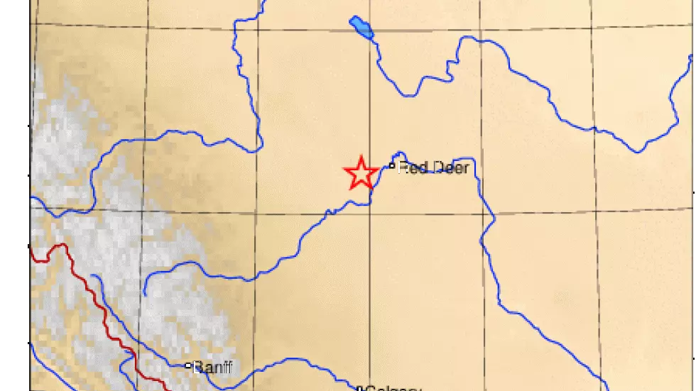 Earthquakes Canada recorded the earthquake at 5:55 a.m. The location was 19 kilometres west of Red Deer (revised from earlier reports) but was felt over a large area of central Alberta.