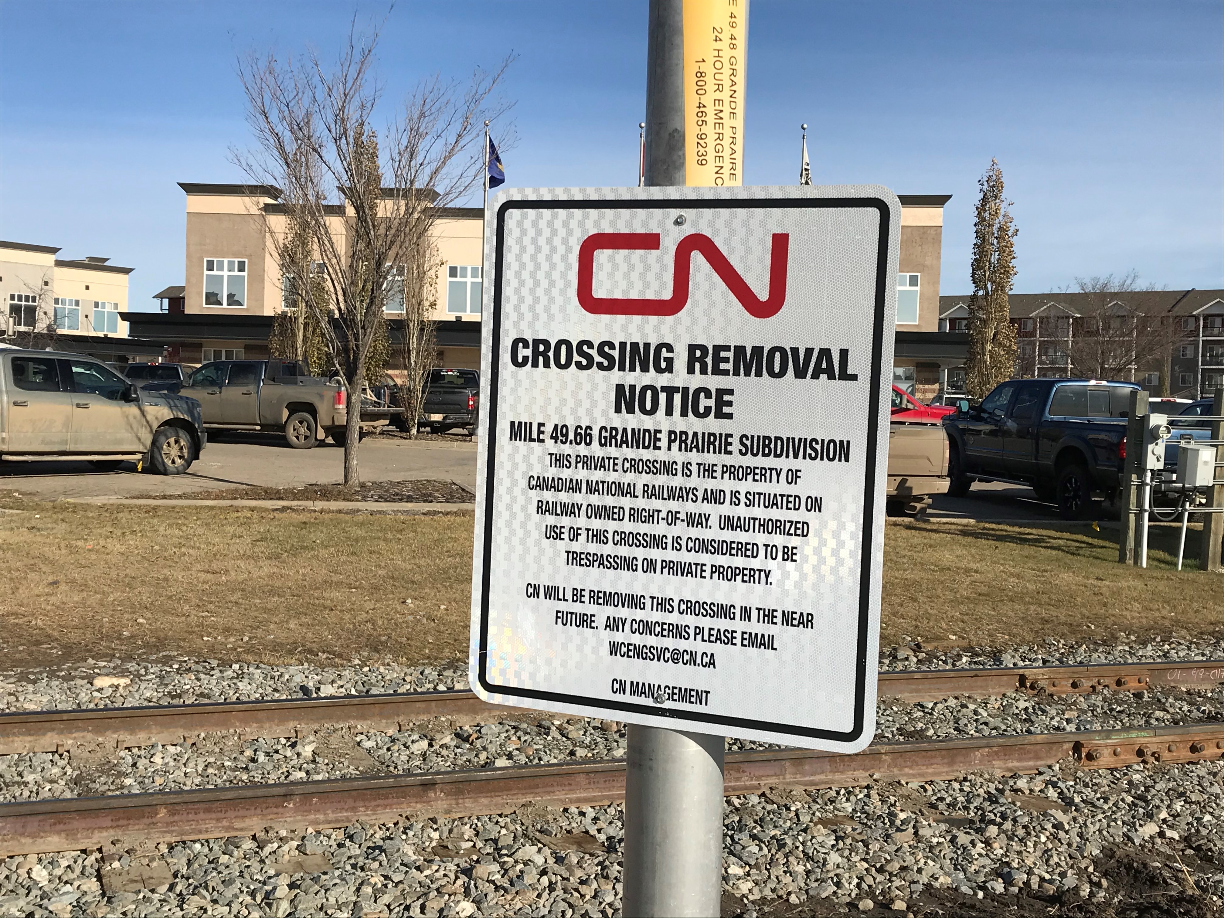 Canadian National Railway says safety concerns led to the closure of a Grande Prairie rail crossing.