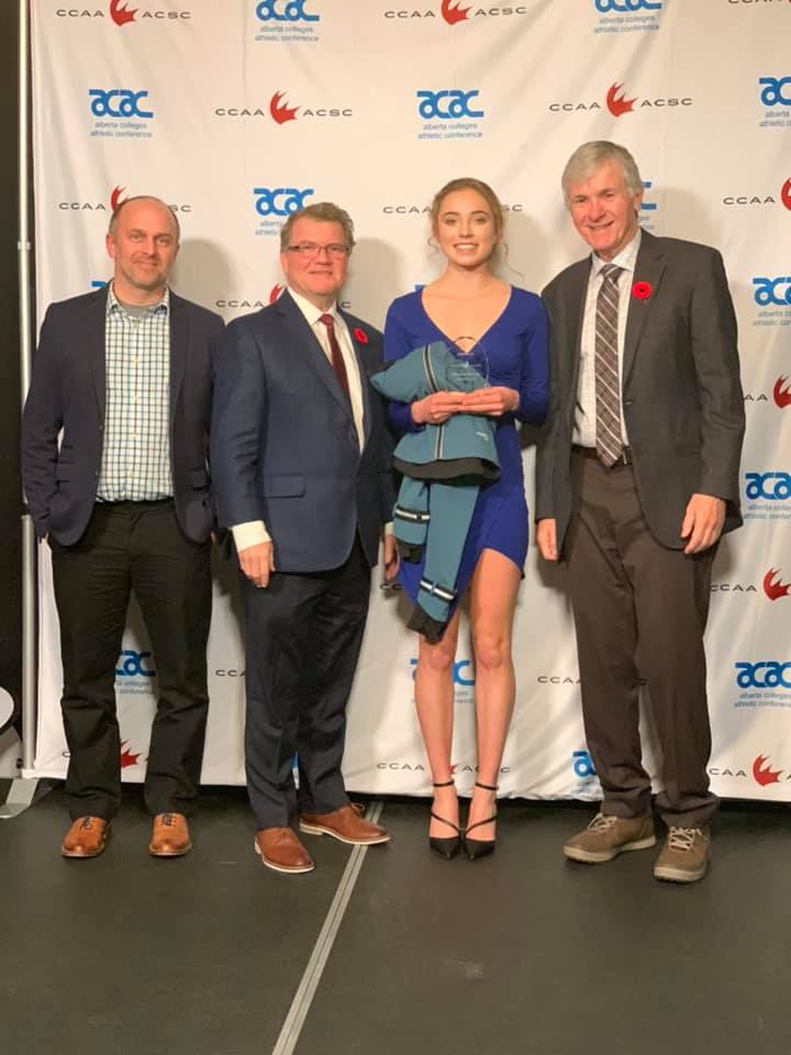 Wolves runner Anna van der Giessen (middle right) took home All-Canadian honours for her seventh place finish on Saturday (Photo: Facebook / GPRC Wolves)