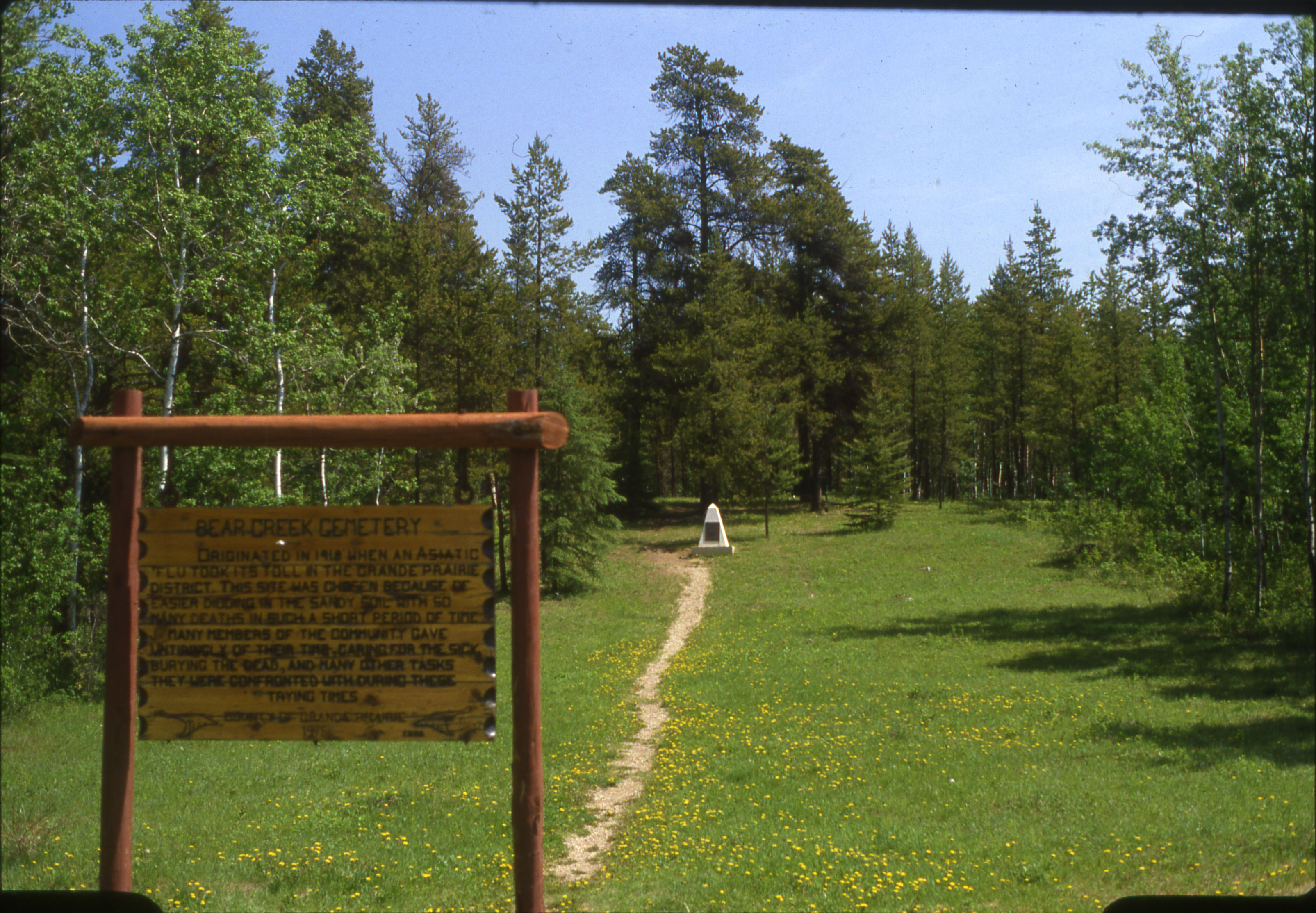 Bear Creek Cemetery (Spanish Flu Cemetery), 1982, located in the sandy dunes north of the creek (photo courtesy of the South Peace Regional Archives)