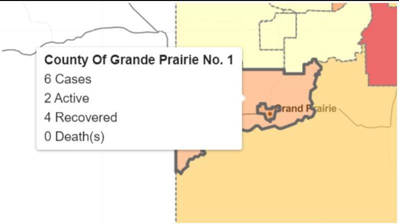 • County of Grande Prairie: Six cases (Two active, four recovered)