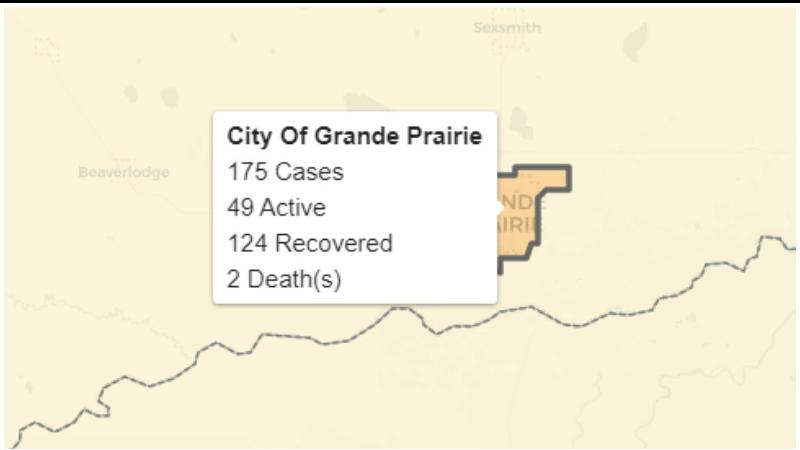 • City of Grande Prairie: 175 cases (49 active, 124 recovered, two deaths)