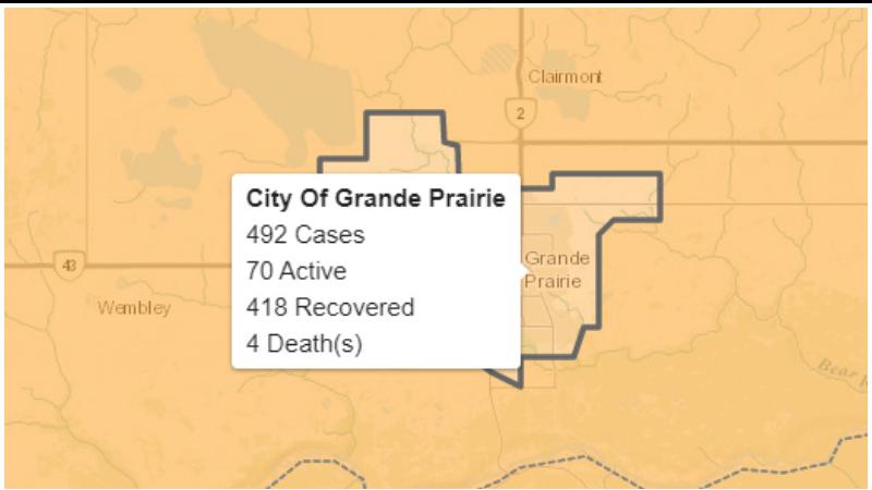 The County of Grande Prairie once again added no new cases along with three more recoveries. There are now 18 active cases there.