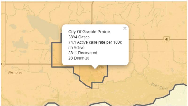 No new cases and one recovery was recorded in the County of Grande Prairie, where there are now 45 active cases.