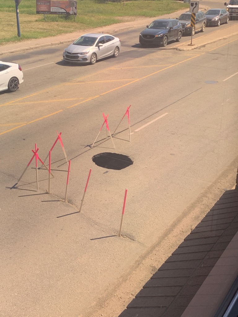 The City of Grande Prairie says all southbound traffic on 98 Street at 101 Avenue is being rerouted at this time due to a sinkhole.