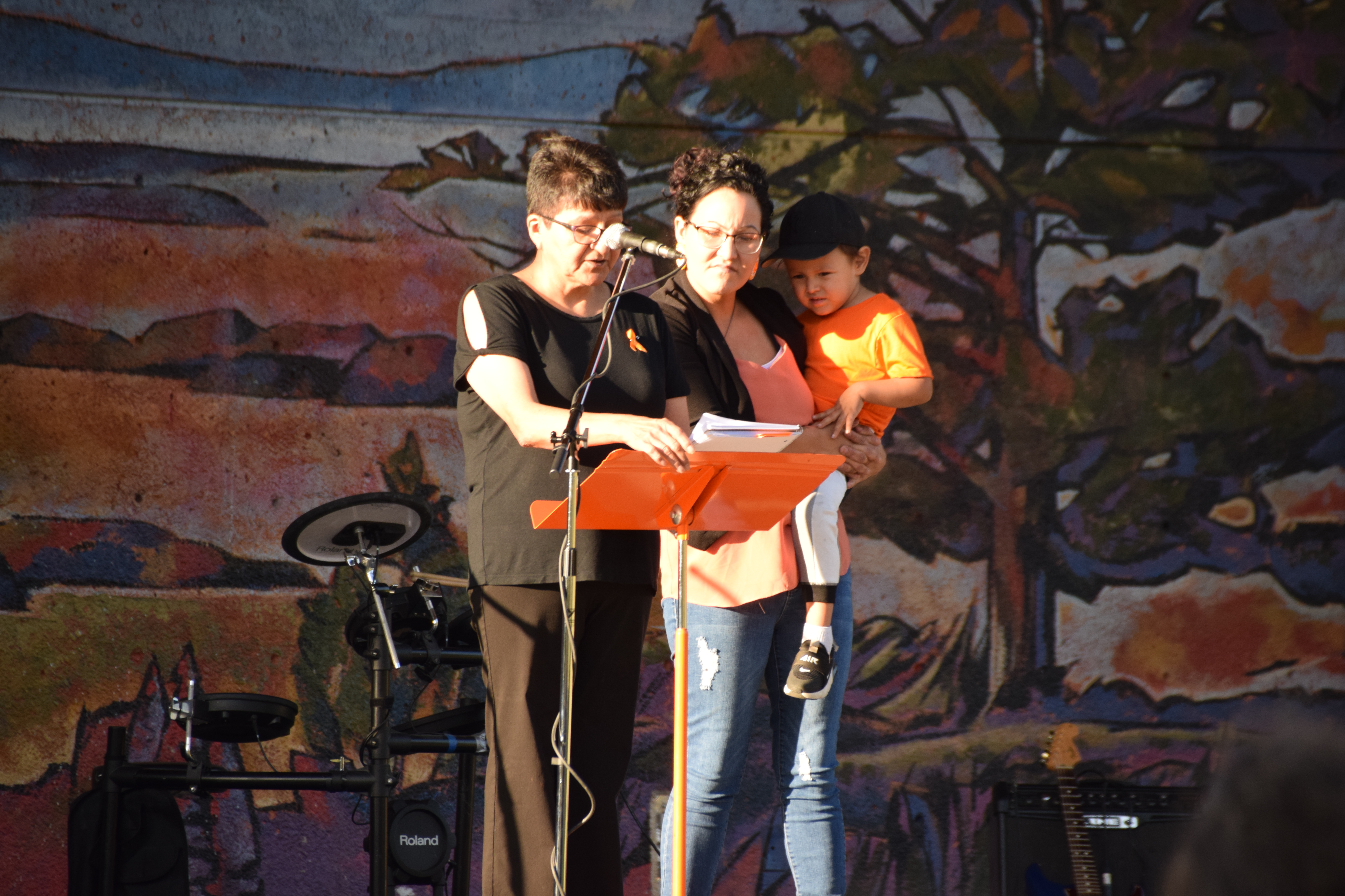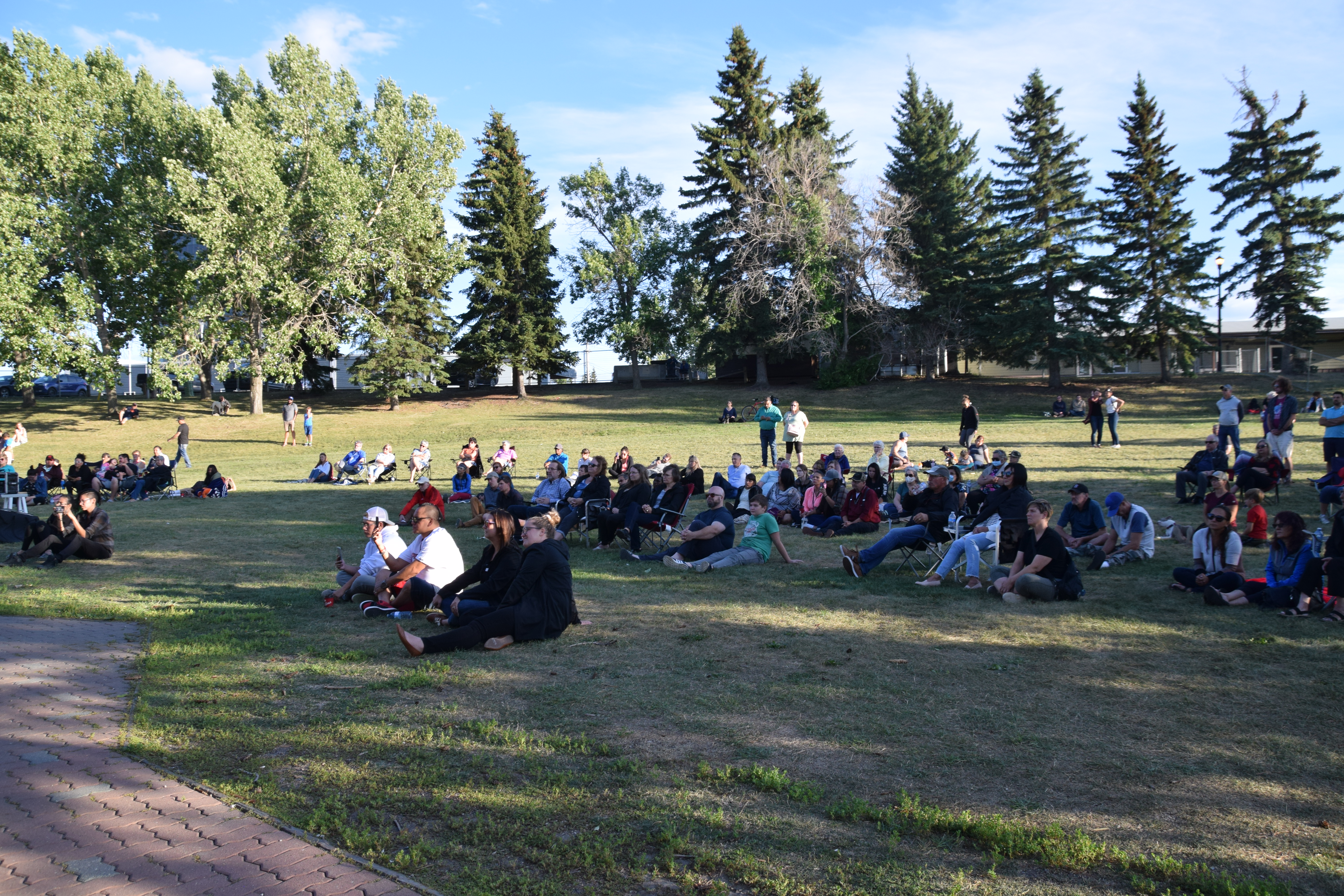 Close to 100 people gathered at the Muskoseepi Park Amphitheater Wednesday evening in an effort to take a step forward in reconciliation with Indigenous peoples who lived through the residential schooling system in Canada, and those who have been affected by intergenerational trauma.
