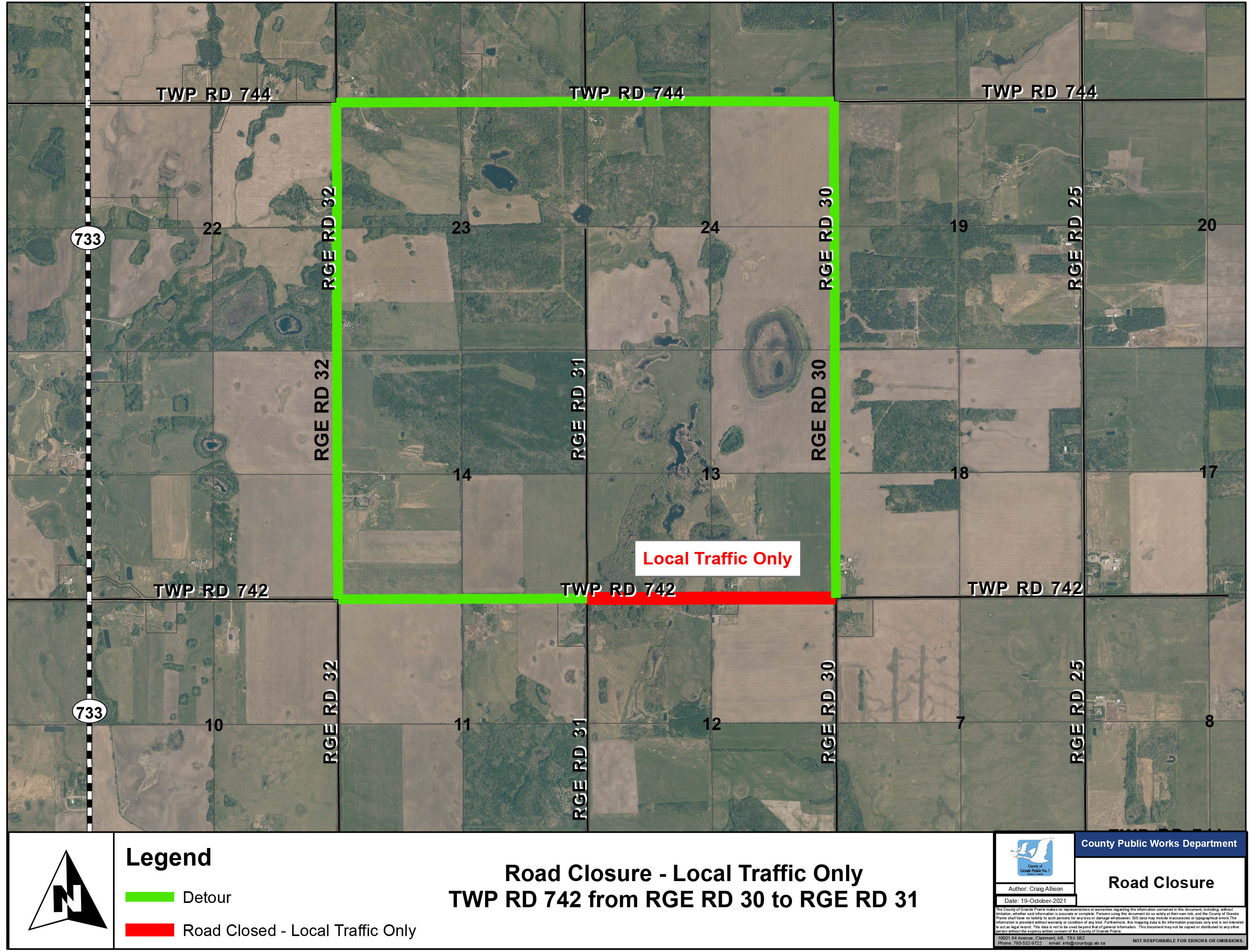 The County also says that starting Friday, Township Road 742 east of Range Road 31 will be open to local traffic only.