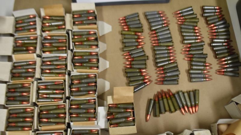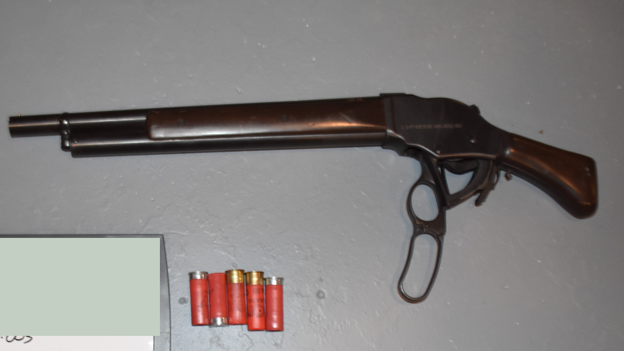 Inside the residence, police located and seized clothing with police markings, three shotguns, an automatic rifle, over 1000 rounds of assorted ammunition, drug paraphernalia and numerous unknown pills.