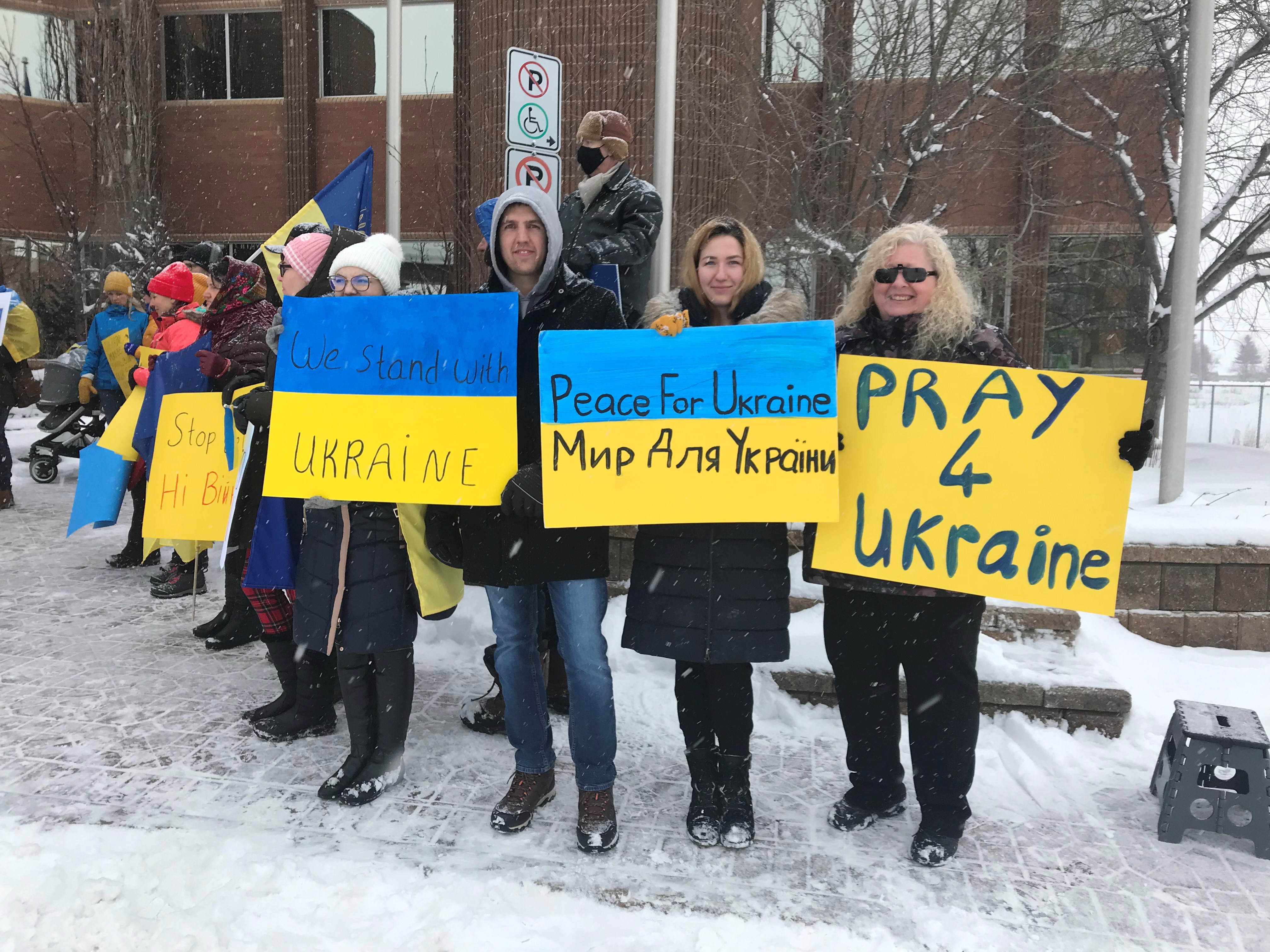 A good-sized crowd came out on a snowy Tuesday afternoon to a rally in support of Ukraine at Grande Prairie City Hall.