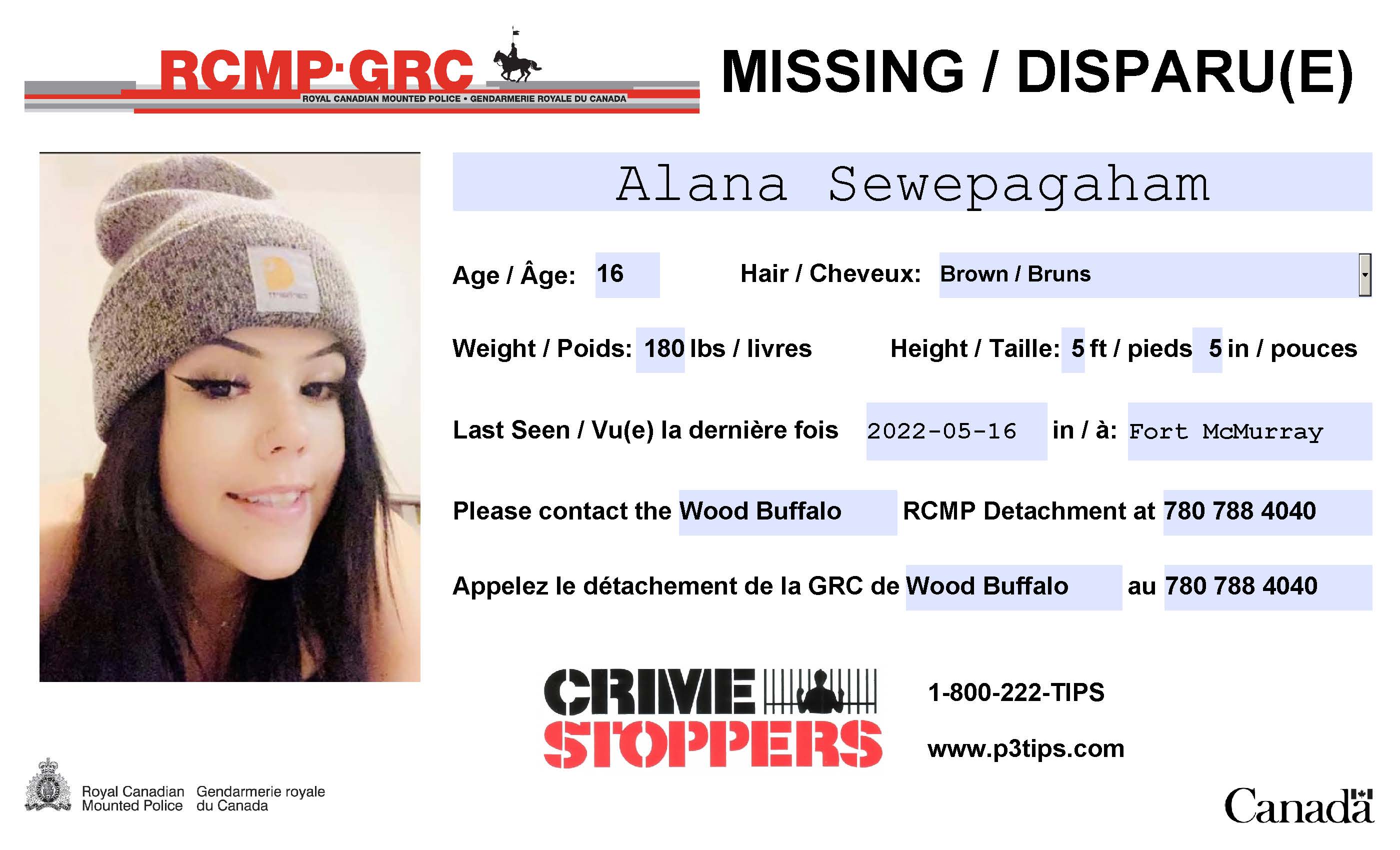 Update on Wednesday, May 18 at 11:40 a.m.: Christa Deanne Noseworthy and Alana Sewepagaham have been located. Fort McMurray RCMP thank the public and the media for their assistance.