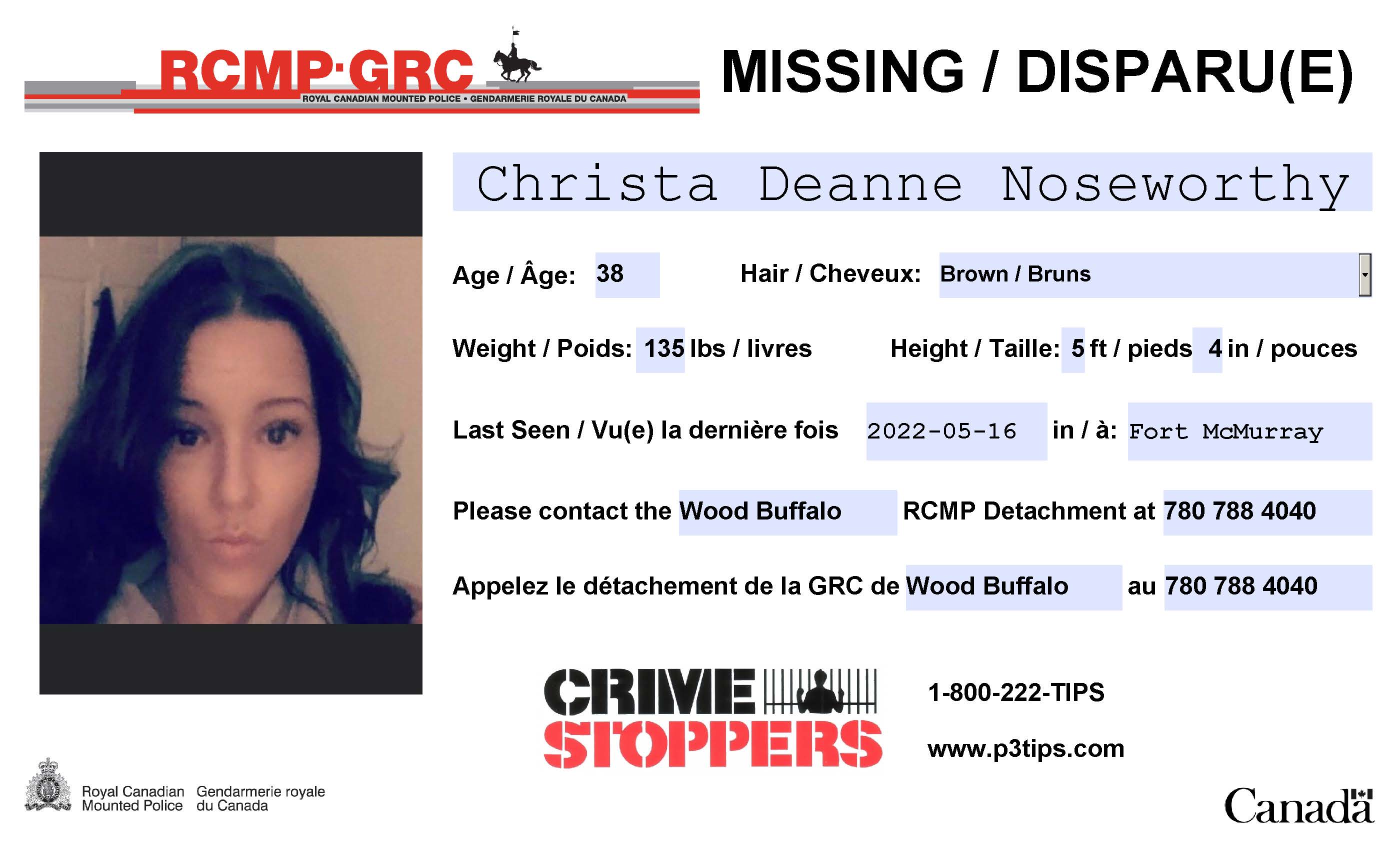 RCMP from the Wood Buffalo area are seeking the public’s help in finding missing persons, 38-year-old Christa Deanne Noseworthy and 16-year-old Alana Swewpagaham.