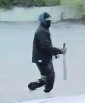 Both suspects were dressed in all black including ski masks, but one male did have white markings on his pants and white running shoes. Both suspects vacated the scene in a silver or grey sedan-style vehicle.