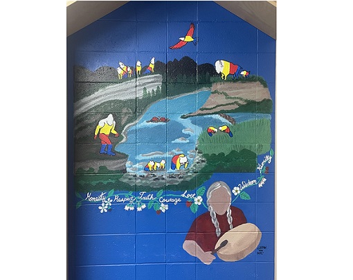 Local indigenous artists and NIHA Cultural navigator for the Grande Prairie Friendship Centre Natascha Okimaw worked with the administration at both schools to capture their ideas and visions for these unique murals.