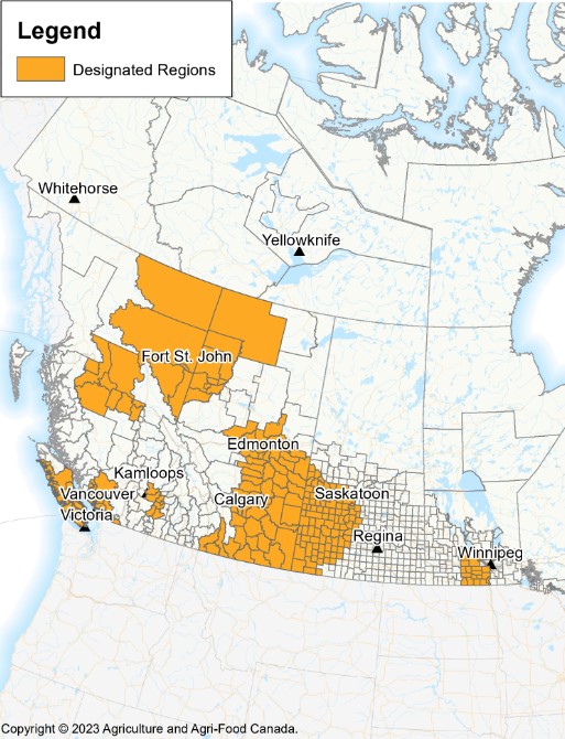 On Monday, the Minister of Agriculture and Agri-Food, the Honourable Lawrence MacAulay, announced an initial list of regions affected by extreme weather conditions in 2023 that have been authorized for the Livestock Tax Deferral.