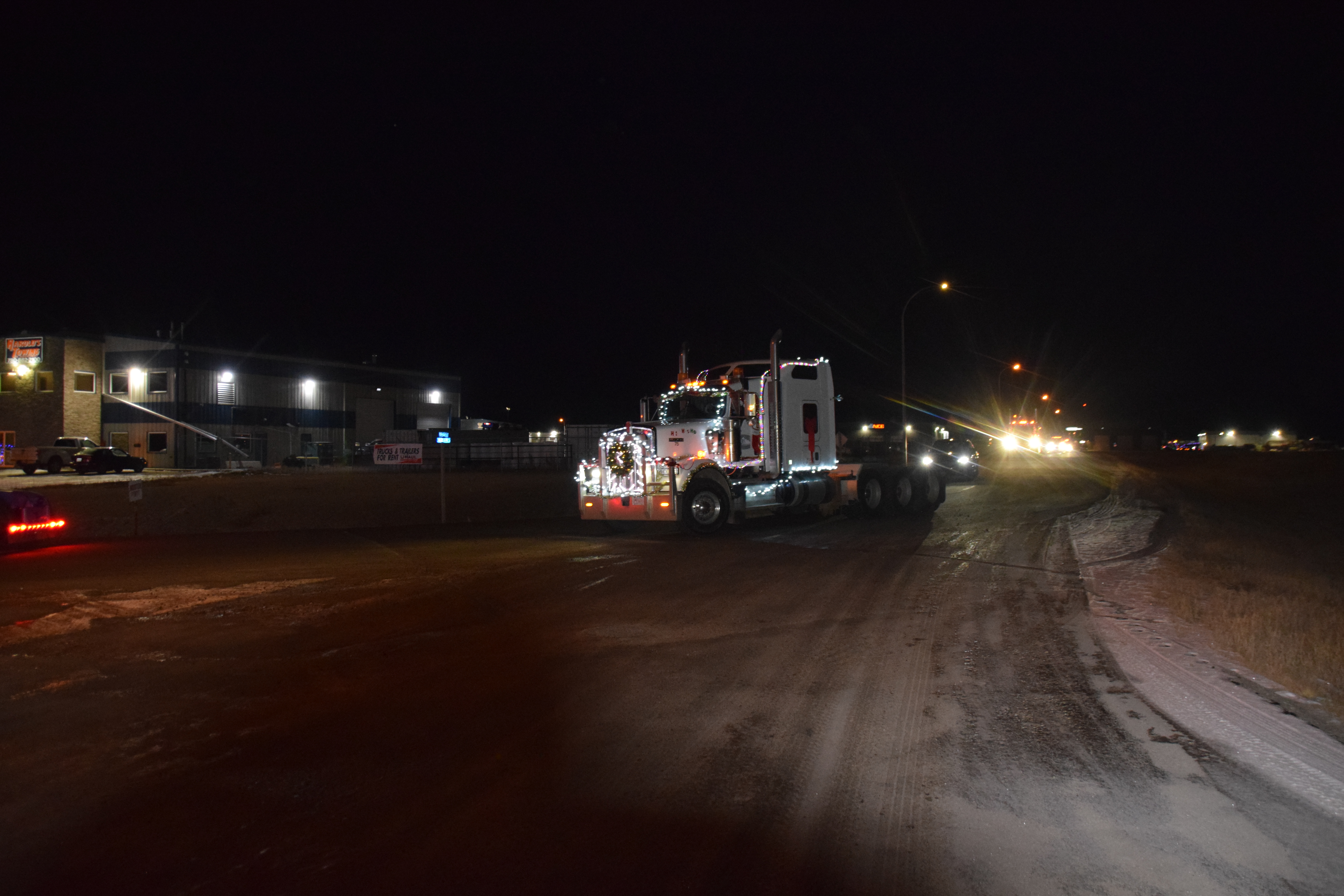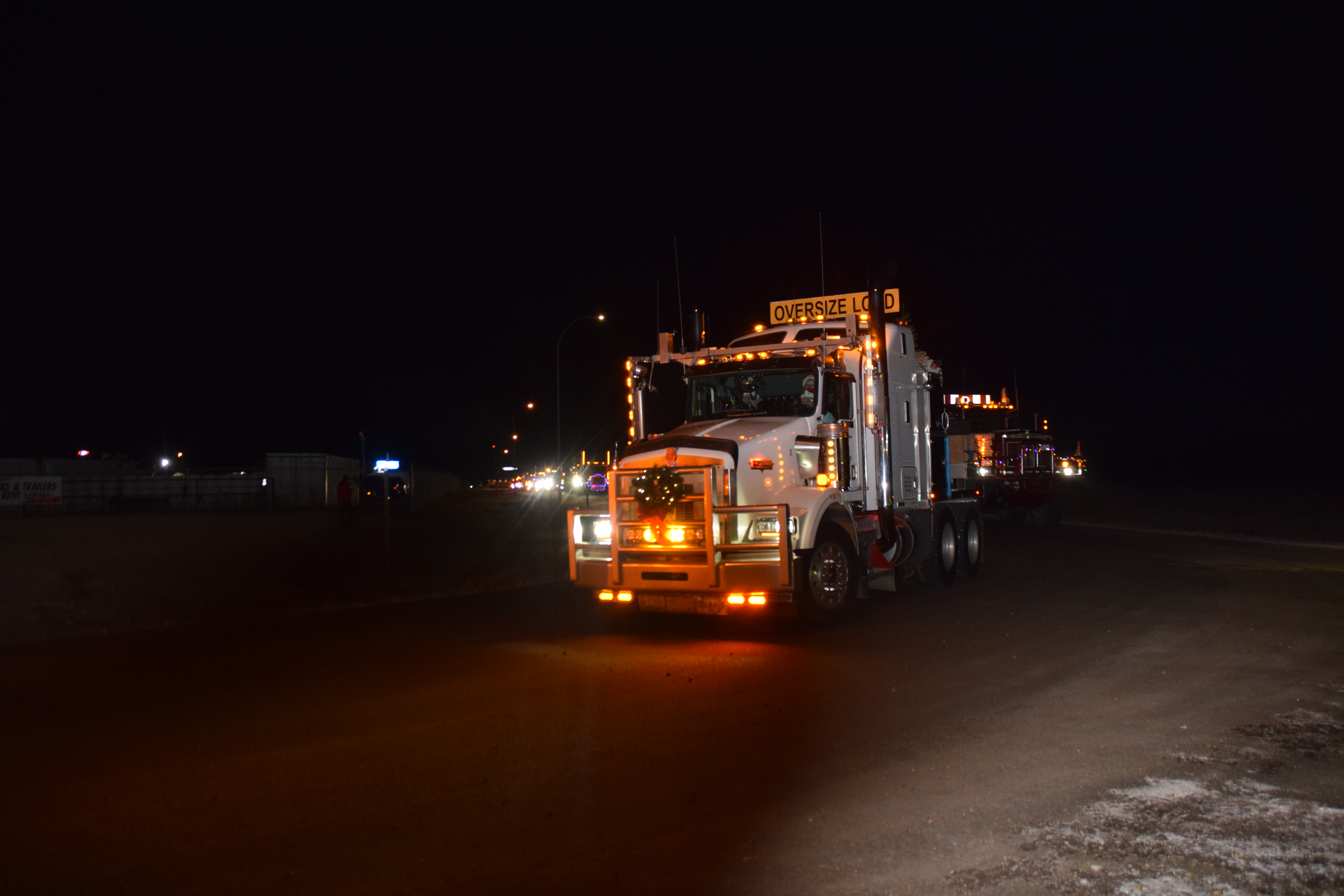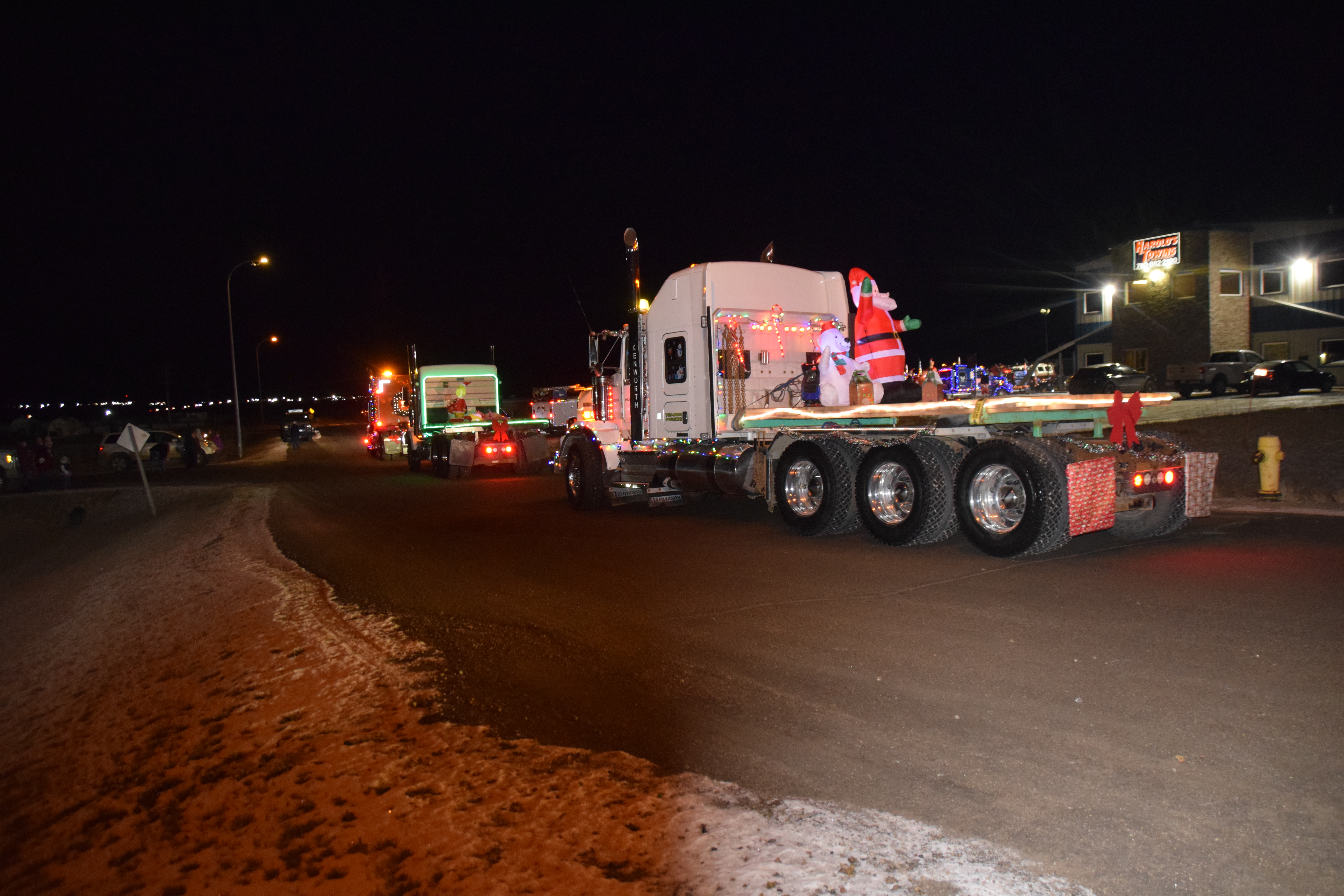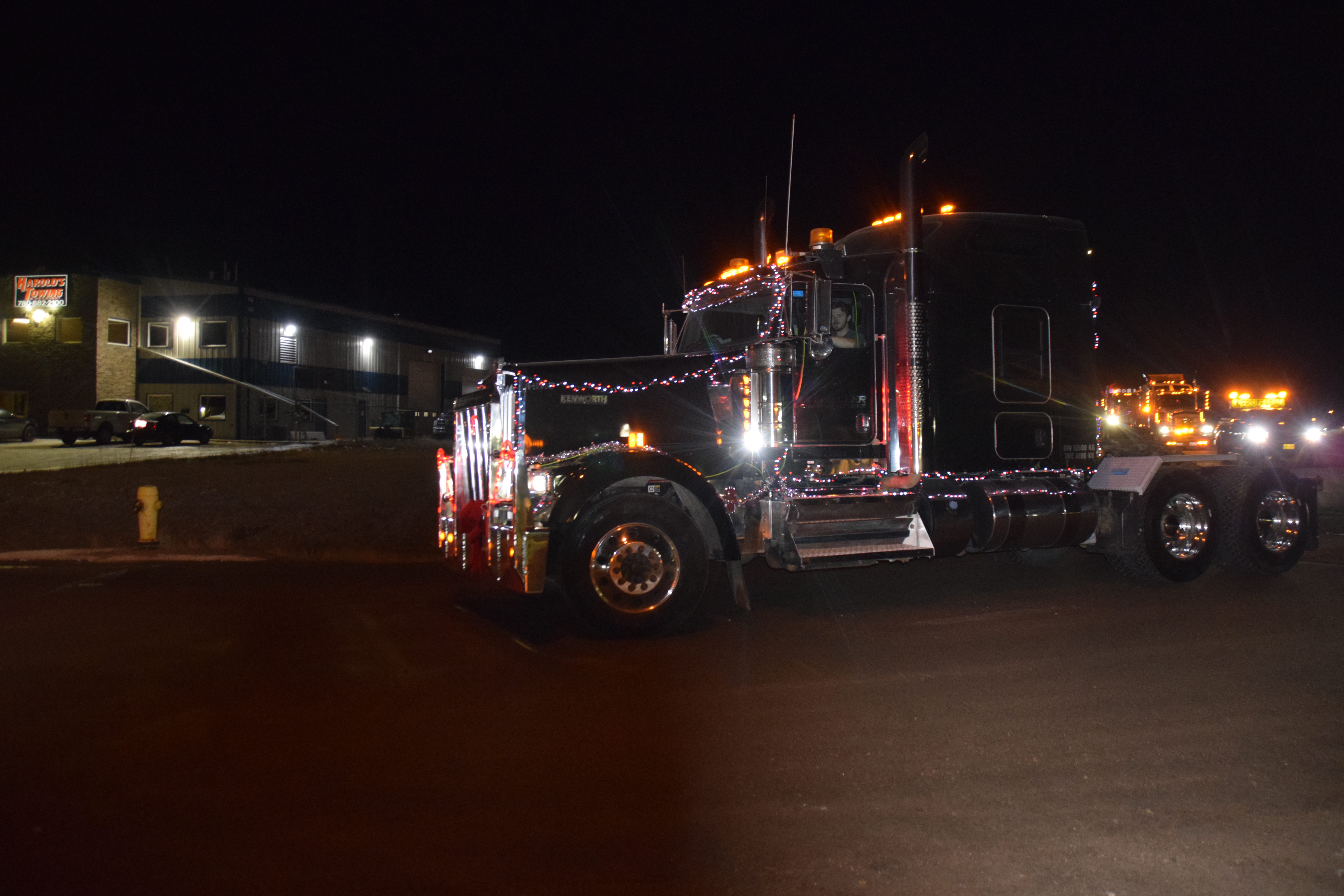 (Photo Credit: Nathaniel Leigh/EverythingGP Staff)Harold’s Towing, along with multiple community business sponsors, organized the “Convoy for Kids” featuring many large trucks covered in Christmas lights and other decorations, alongside a donation BBQ to raise funds for the Helping Hands Society of Grande Prairie.
