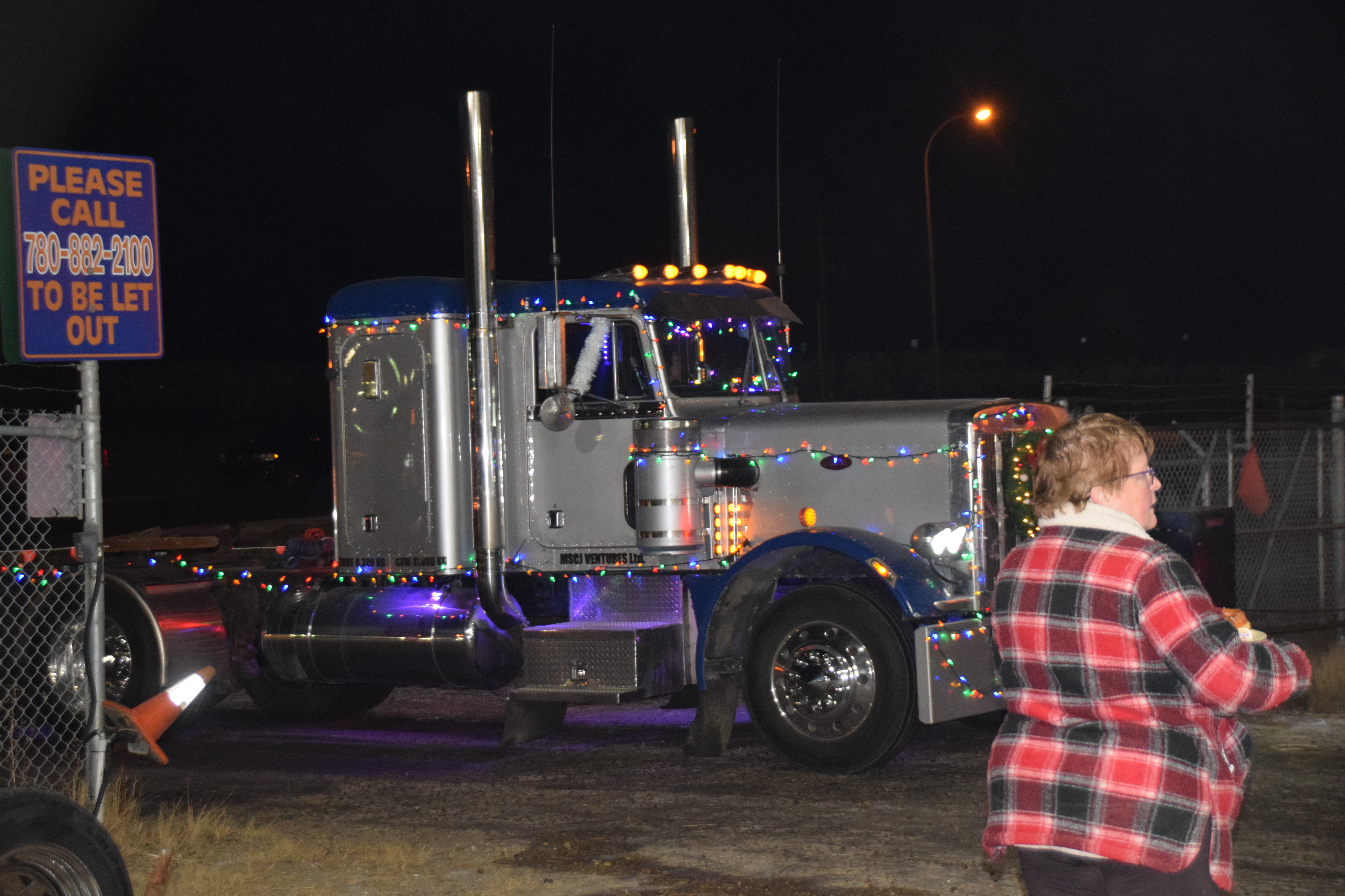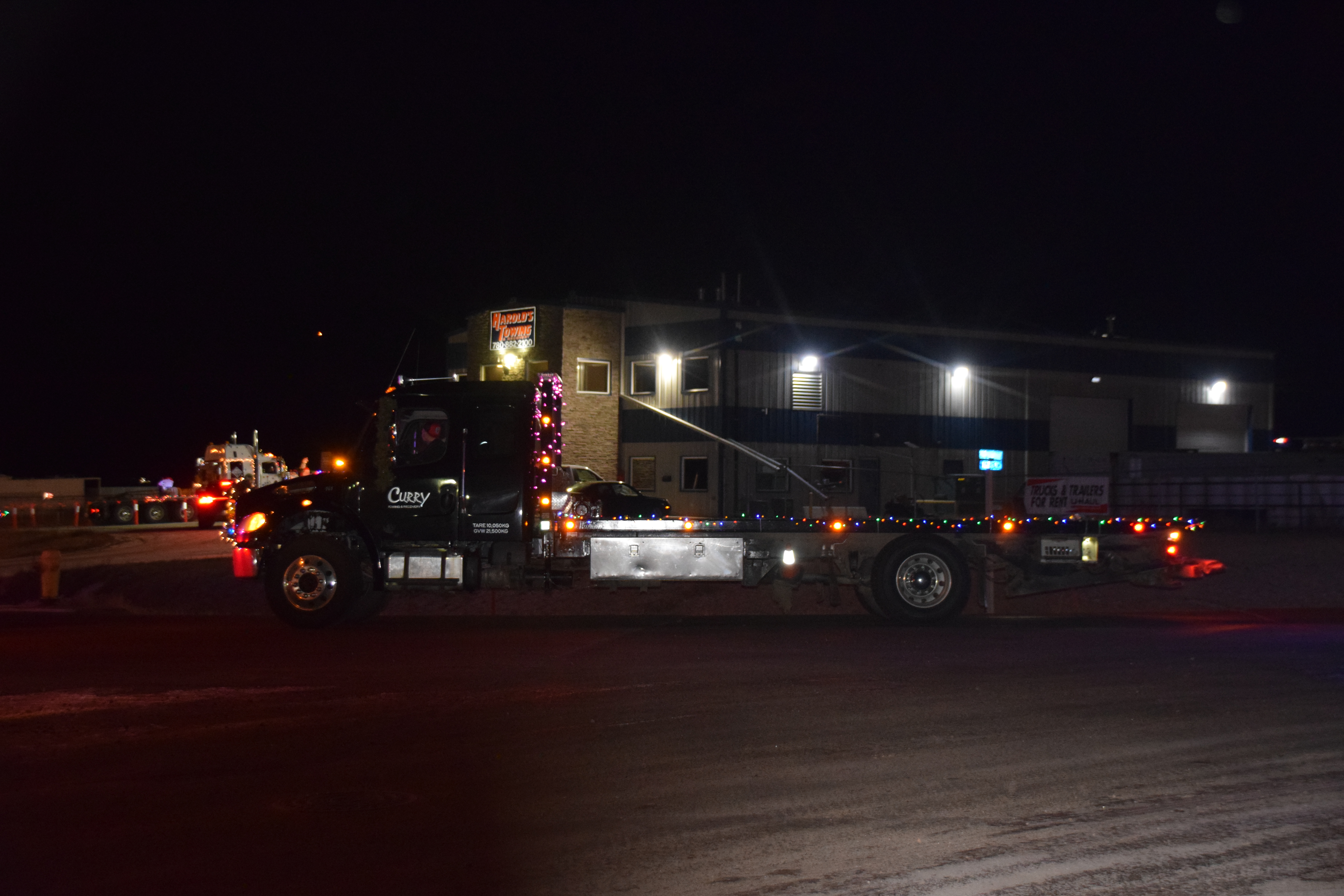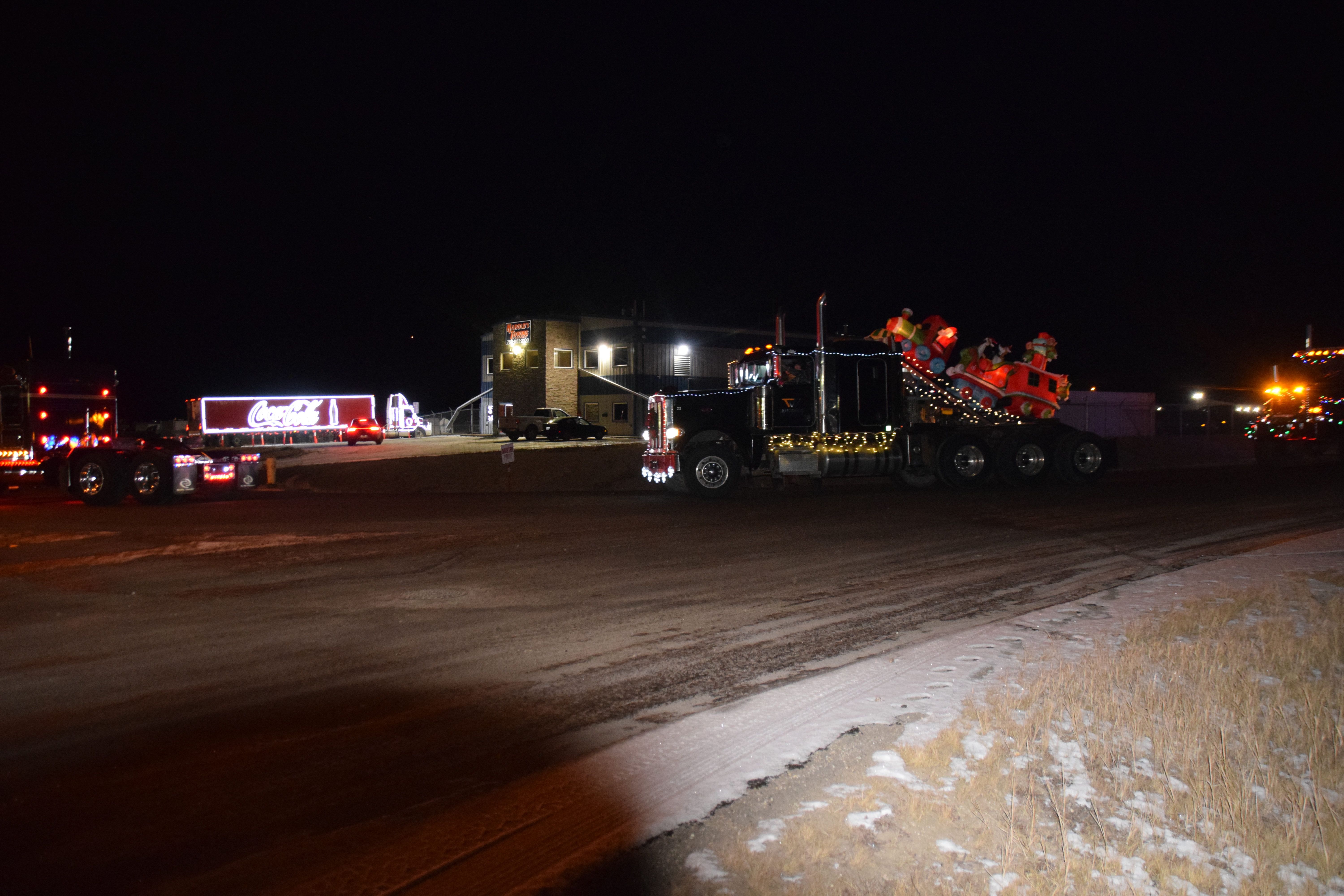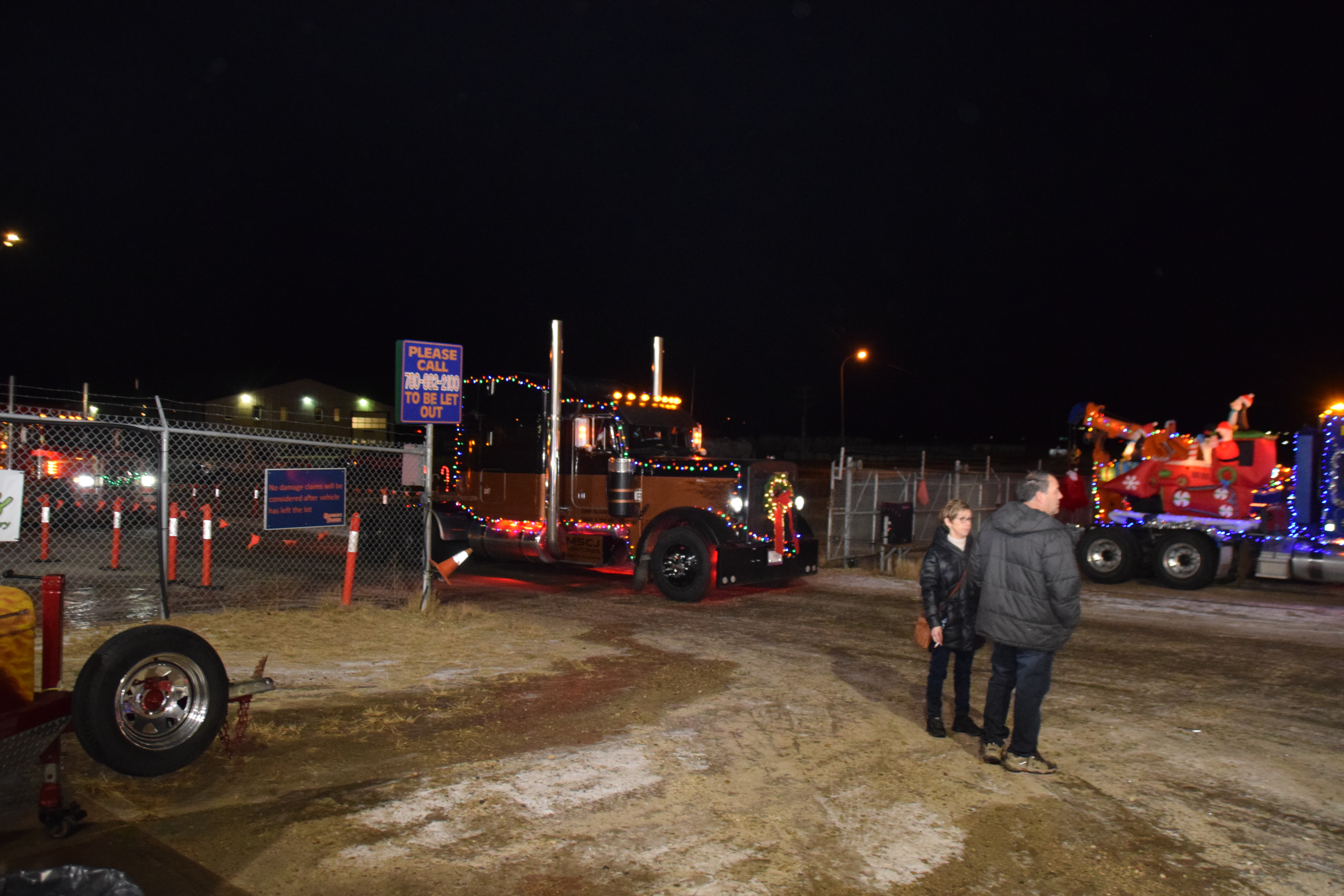 (Photo Credit: Nathaniel Leigh/EverythingGP Staff)Harold’s Towing, along with multiple community business sponsors, organized the “Convoy for Kids” featuring many large trucks covered in Christmas lights and other decorations, alongside a donation BBQ to raise funds for the Helping Hands Society of Grande Prairie.