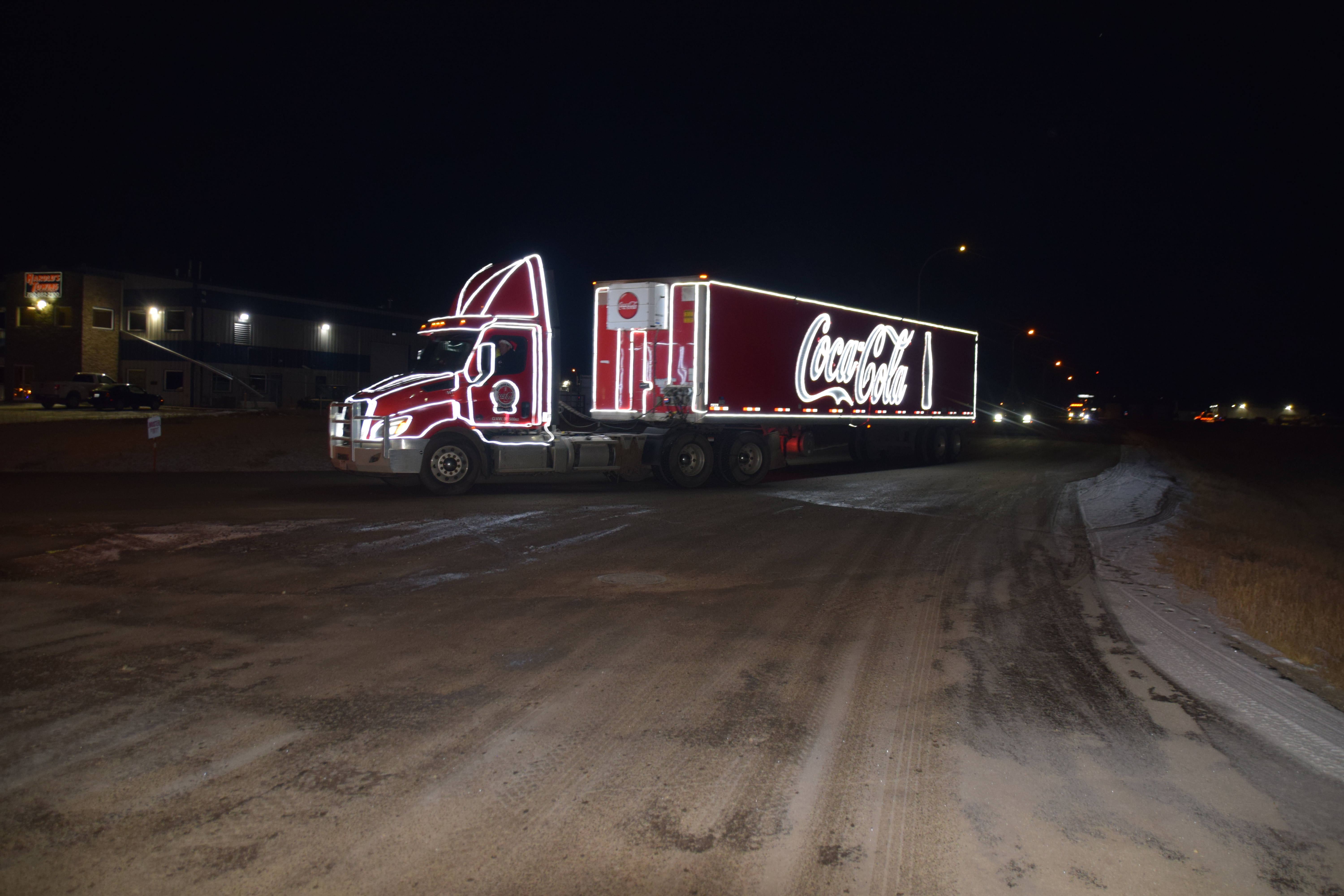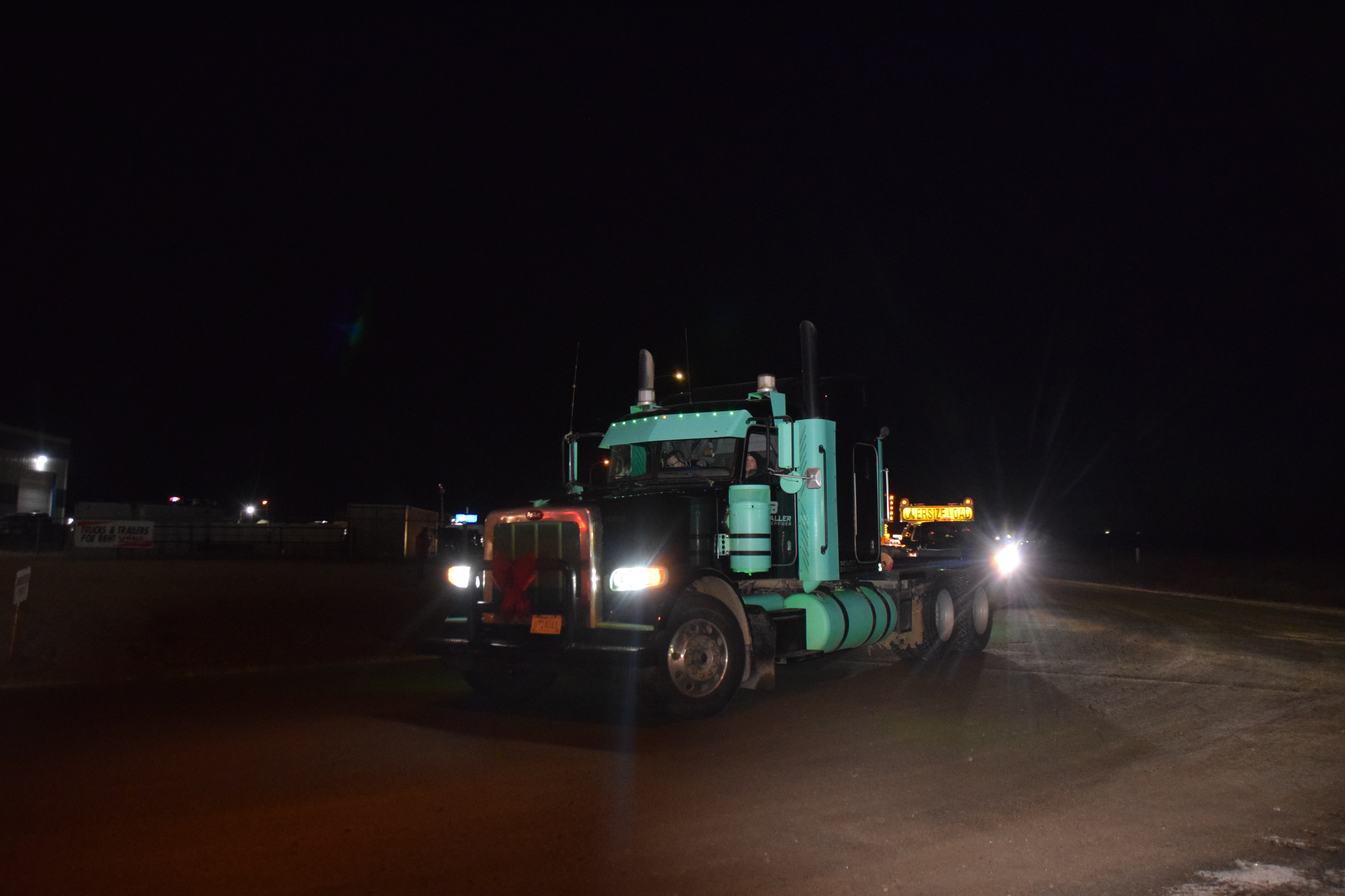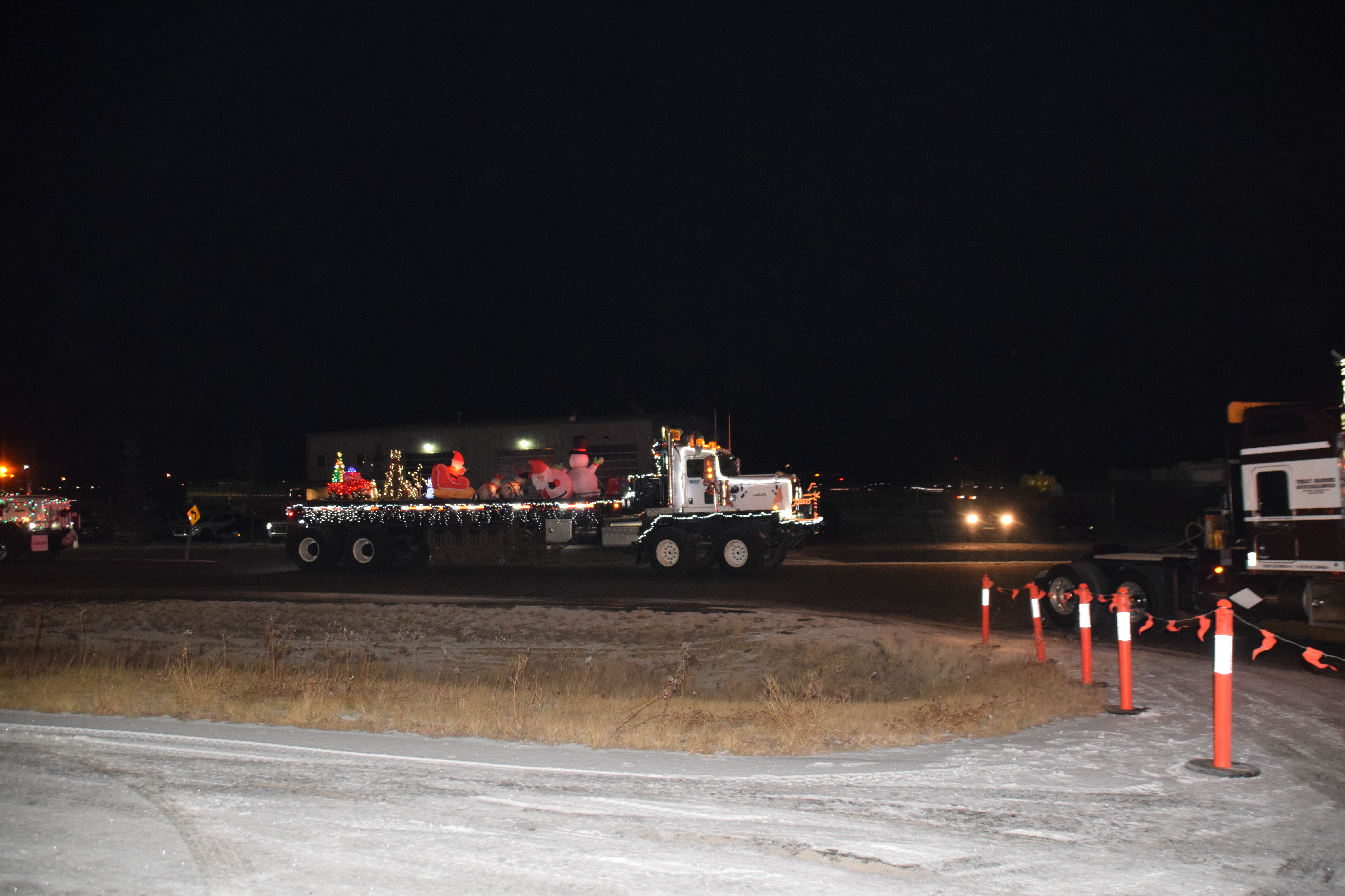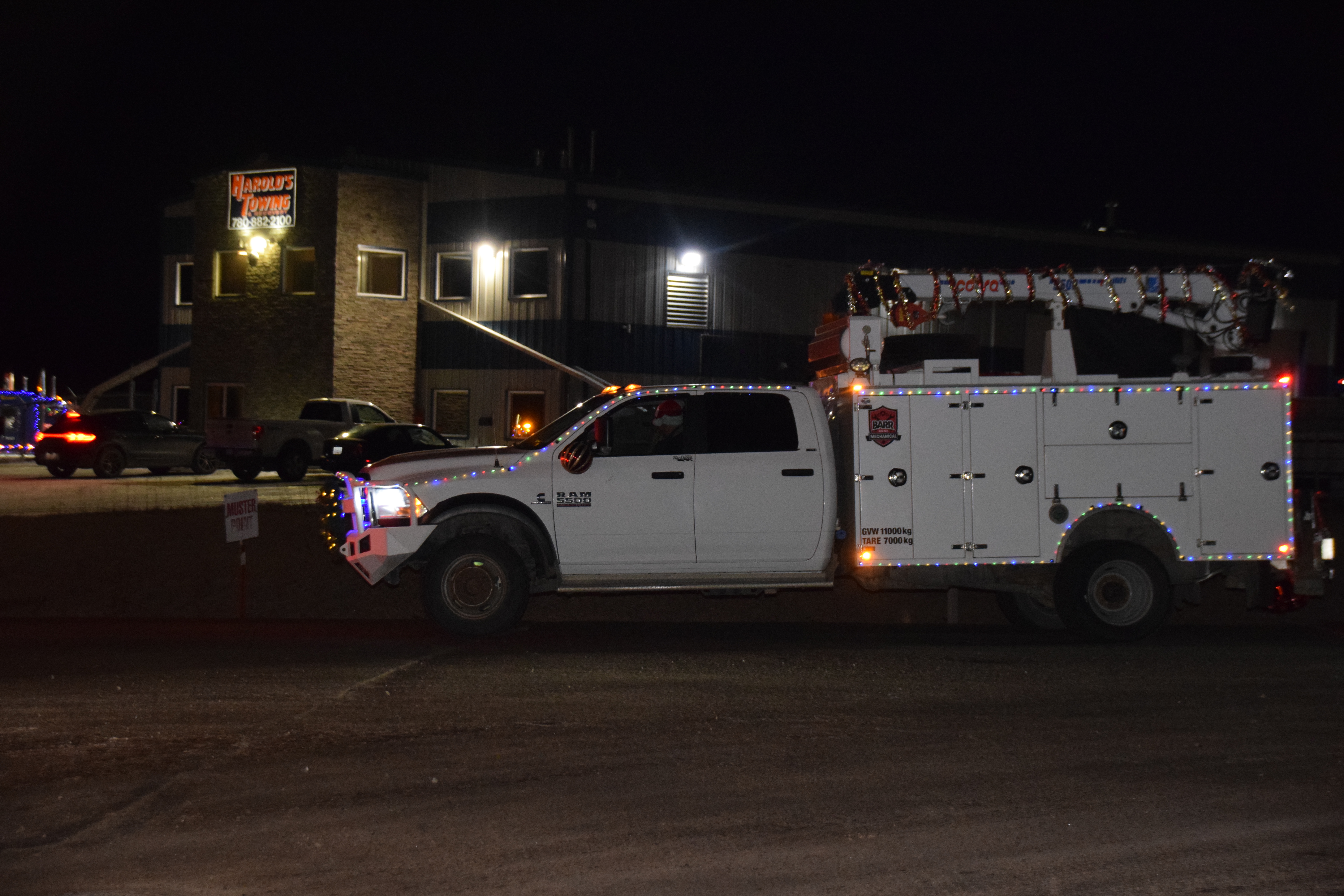 (Photo Credit: Nathaniel Leigh/EverythingGP Staff)Harold’s Towing, along with multiple community business sponsors, organized the “Convoy for Kids” featuring many large trucks covered in Christmas lights and other decorations, alongside a donation BBQ to raise funds for the Helping Hands Society of Grande Prairie.