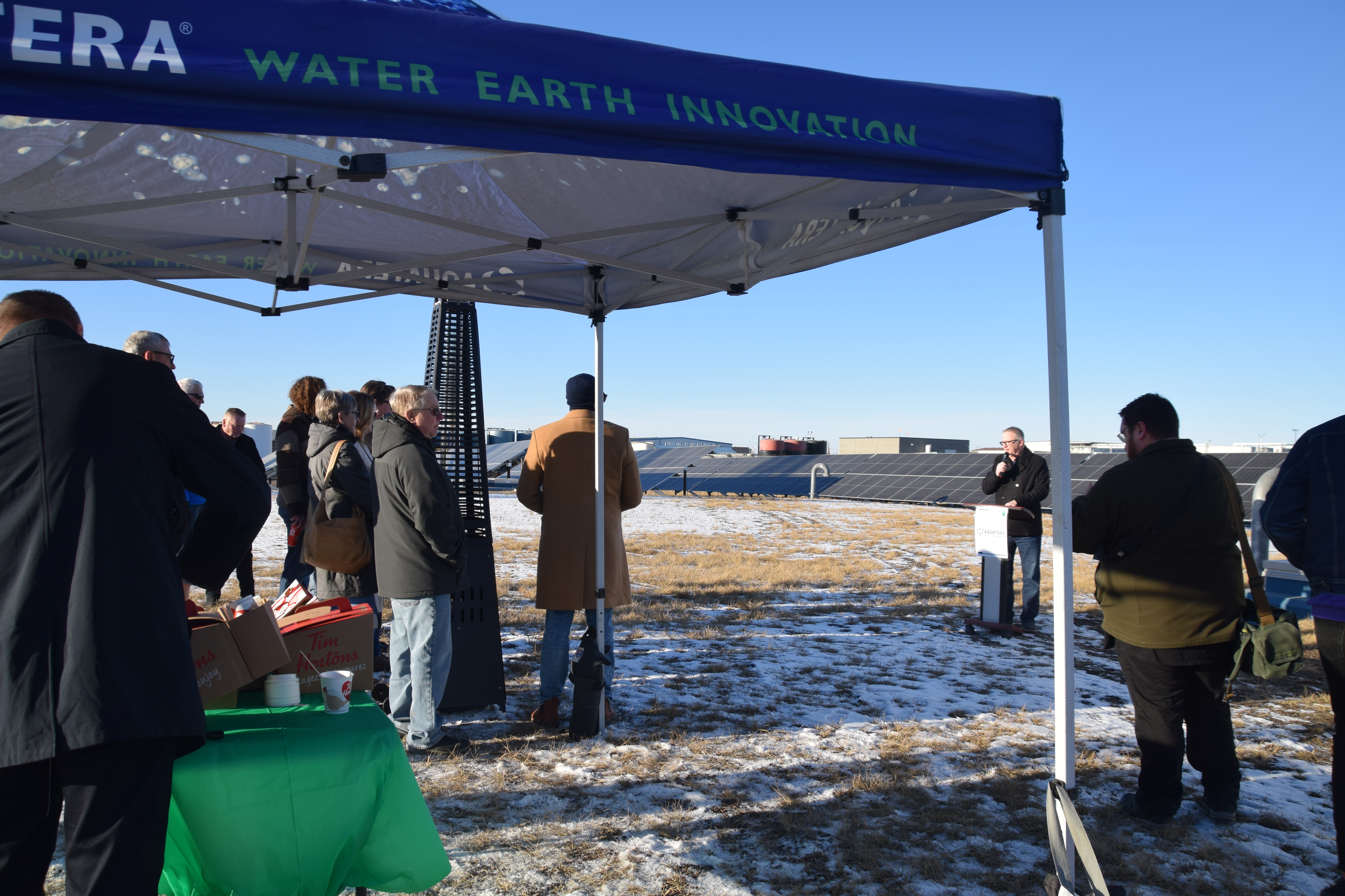 The ceremony was held to officially open the new solar power project at the pump station, which is expected to generate approximately 80 per cent of the power used by the facility.