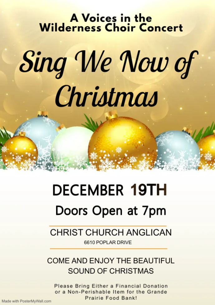 Grande Prairie’s Christ Church Anglican will be collecting food bank donations when it hosts a Christmas music event tonight (Tuesday, December 19).