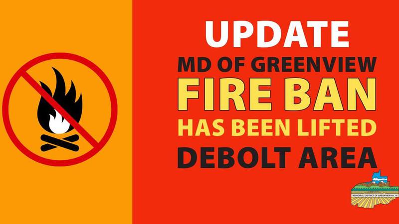 The Municipal District of Greenview has lifted its fire ban for the DeBolt area.
