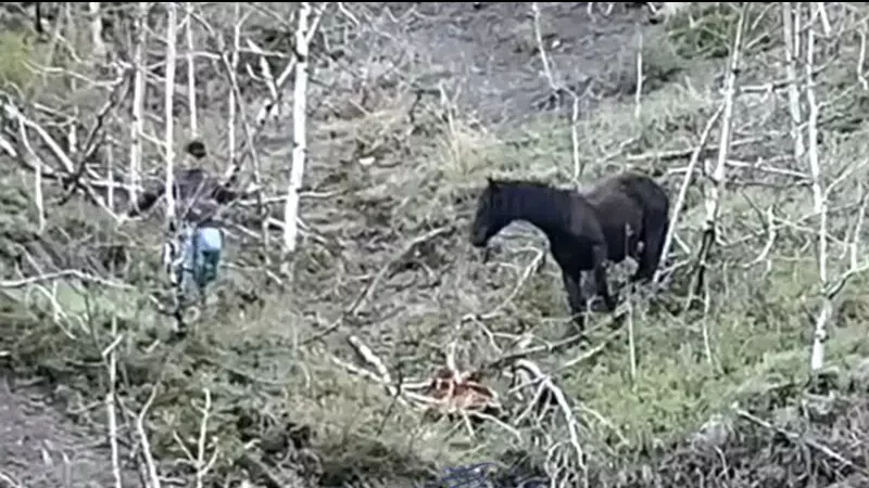 Words heard in video footage of a West Country man rescuing a wild foal caught in a thicket near the edge of a cliff.