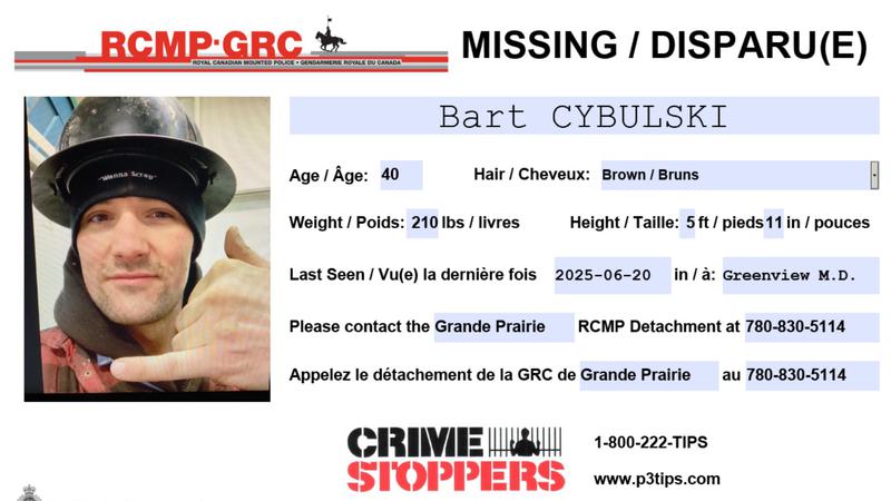Mounties in Grande Prairie are requesting the public’s assistance in locating missing 40-year-old Bart Cybulski.