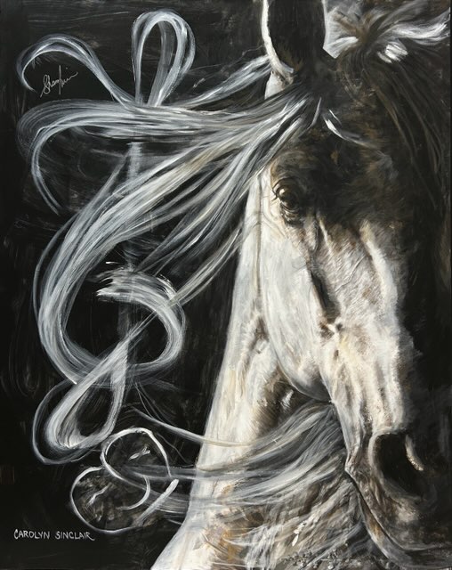 “It looked like I was just smushing paint all over it and taking it all out,” says Sinclair. “Shania even said on stage ‘Oh I was worried for a minute because all I could see was black paint!’ all of a sudden, the image comes to life, and you can see it on the canvas. When I turn the canvas, then you can see the shape of the horse.”
