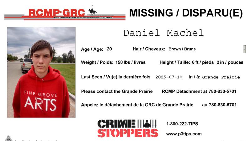 Mounties in Grande Prairie are requesting the public’s help in locating missing 20-year-old Daniel Machel.