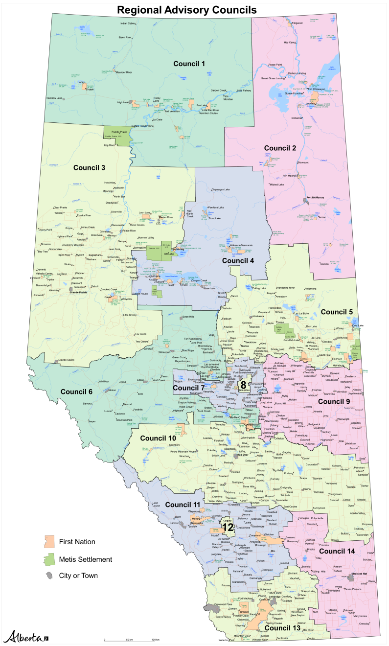 Photo Courtesy Alberta GovernmentIn the Peace Region, two councils make up the area, with Regional Advisory Council 1 serving peace communities north of the Paddle Prairie Settlement, while Council 3 serves the Grande Prairie region, including Grande Cache, Fox Creek and Valleyview.