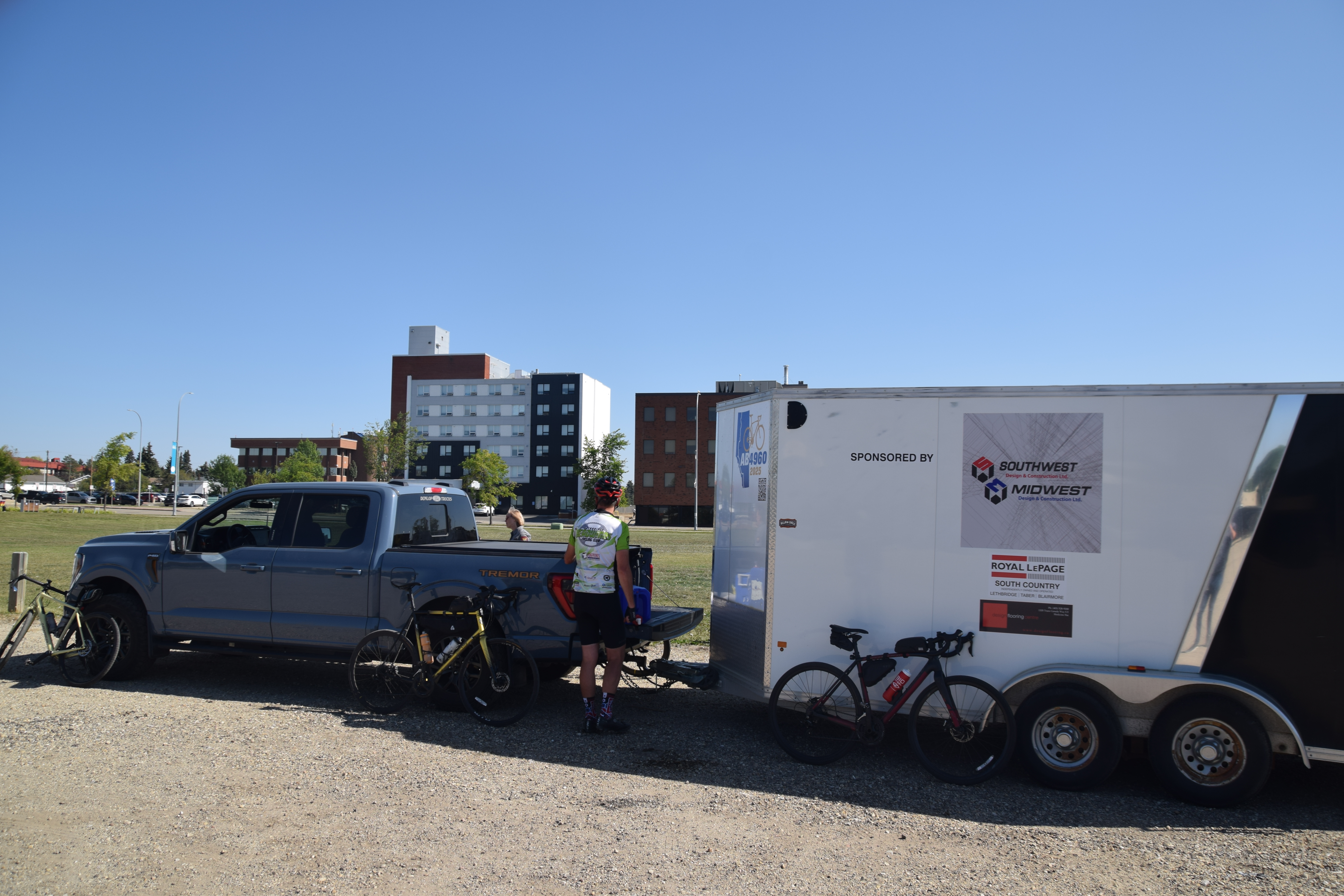 A group of bicyclists travelling across Alberta and raising funds for Alberta Search and Rescue stopped in Grande Prairie Thursday, Aug. 28.