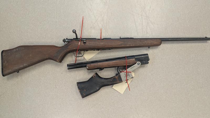 A search of the ditched vehicle and individuals turned up two firearms and the vehicle was confirmed to have been stolen out of Peace River.