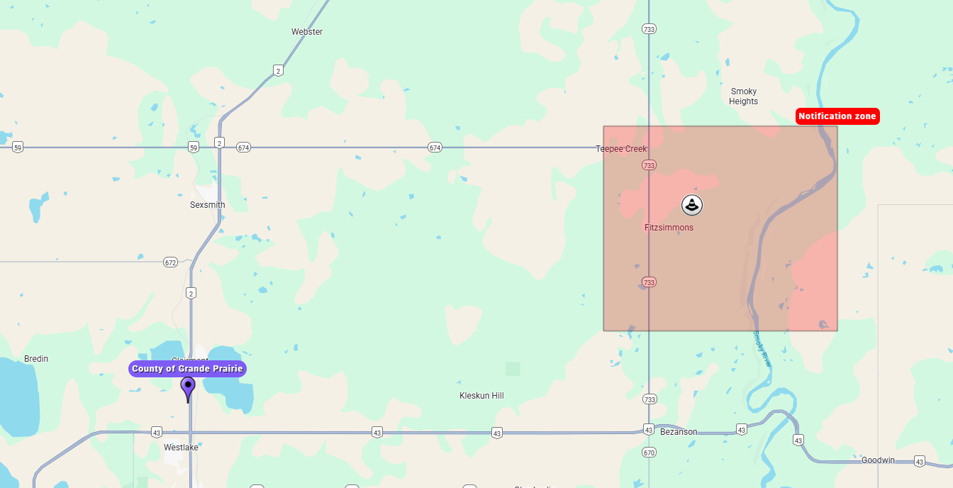 (Photo Credit: County of Grande Prairie)Local traffic will be allowed through, while all other traffic will be detoured to Range Road 30 or 32.
