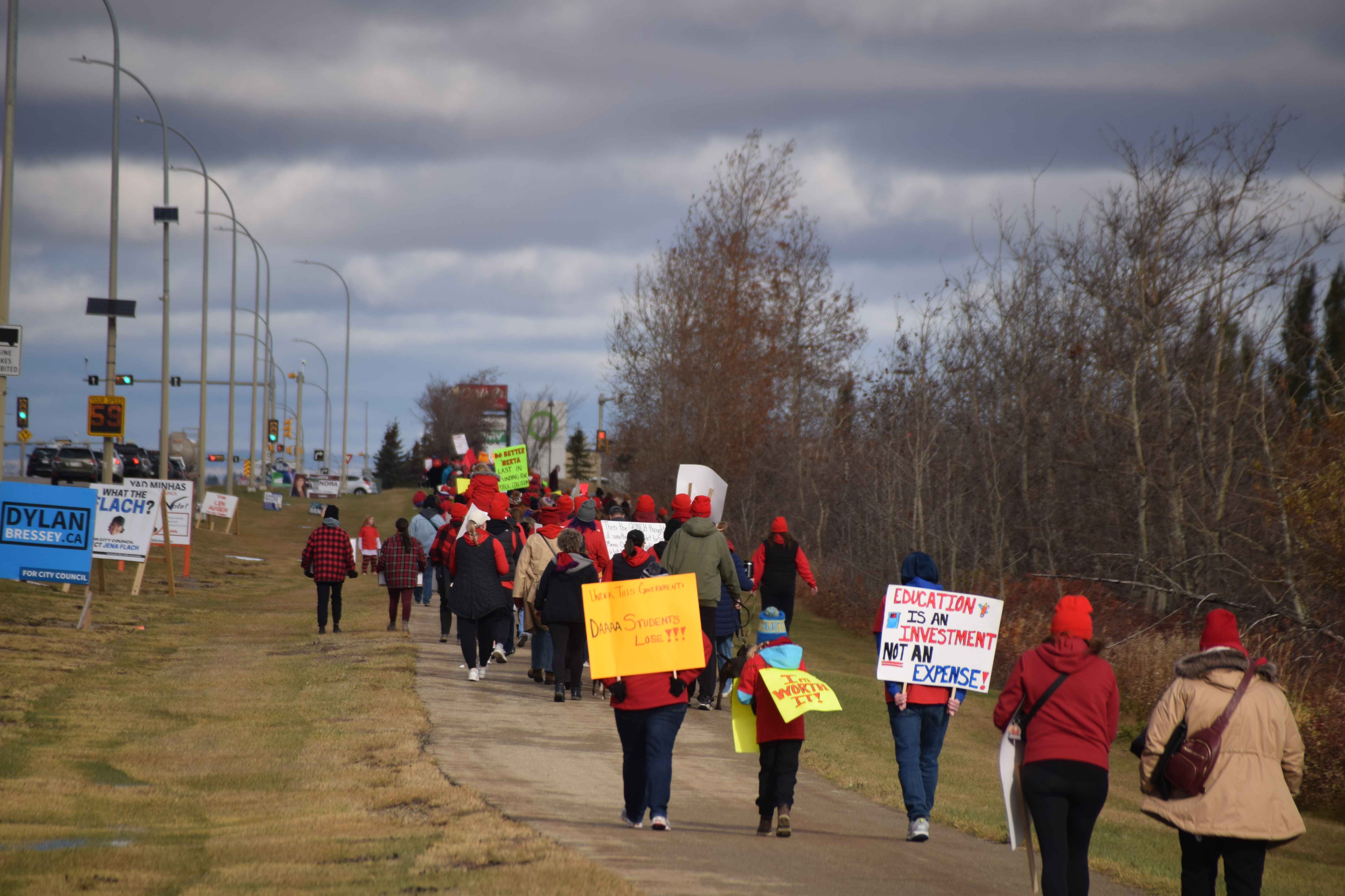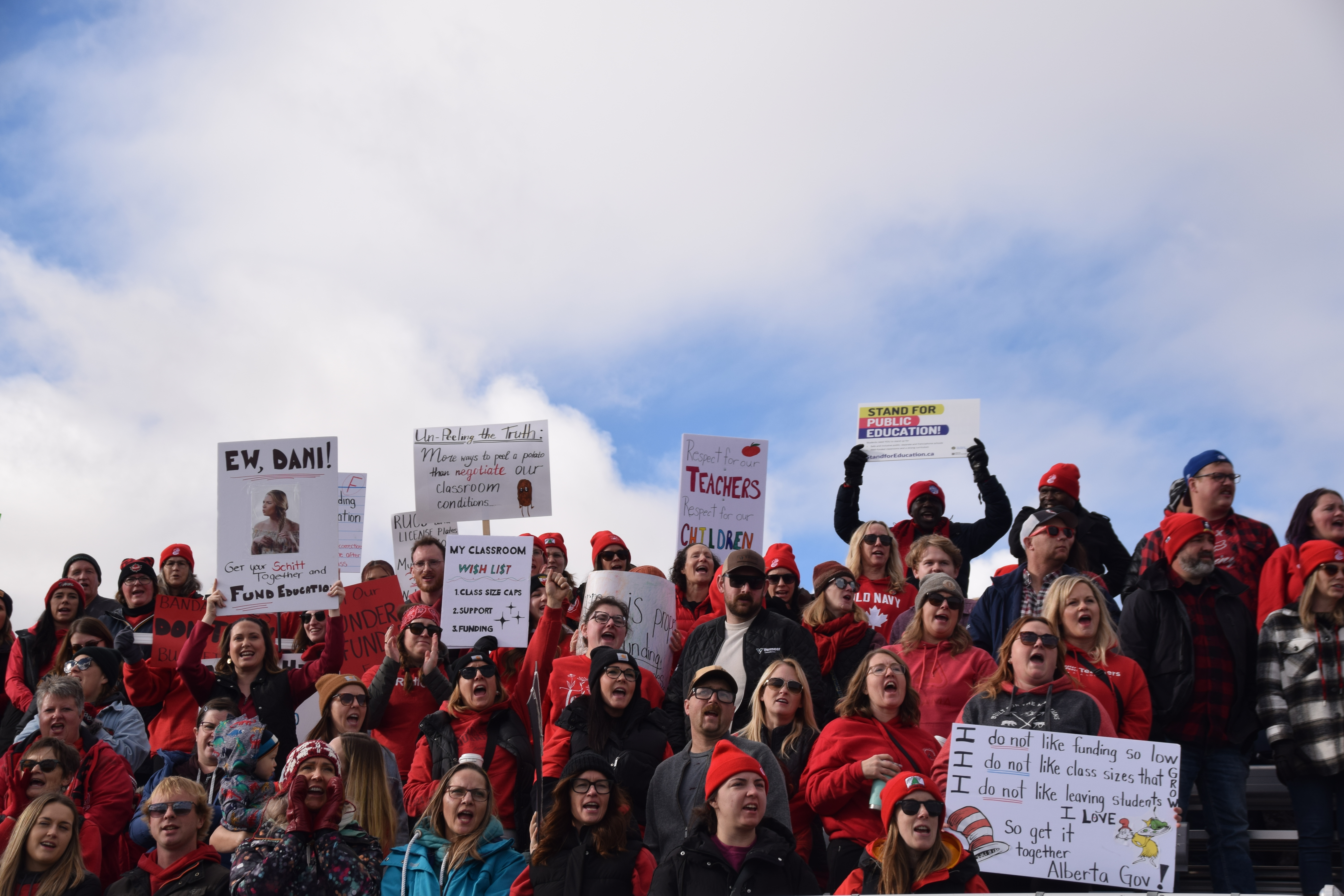 A sea of red filled the stands at Hansen Lincoln Field on Sunday (Oct. 19) with educators, Alberta Teachers’ Association union members, students, and community members alike supporting of the historic teachers strike in Alberta.