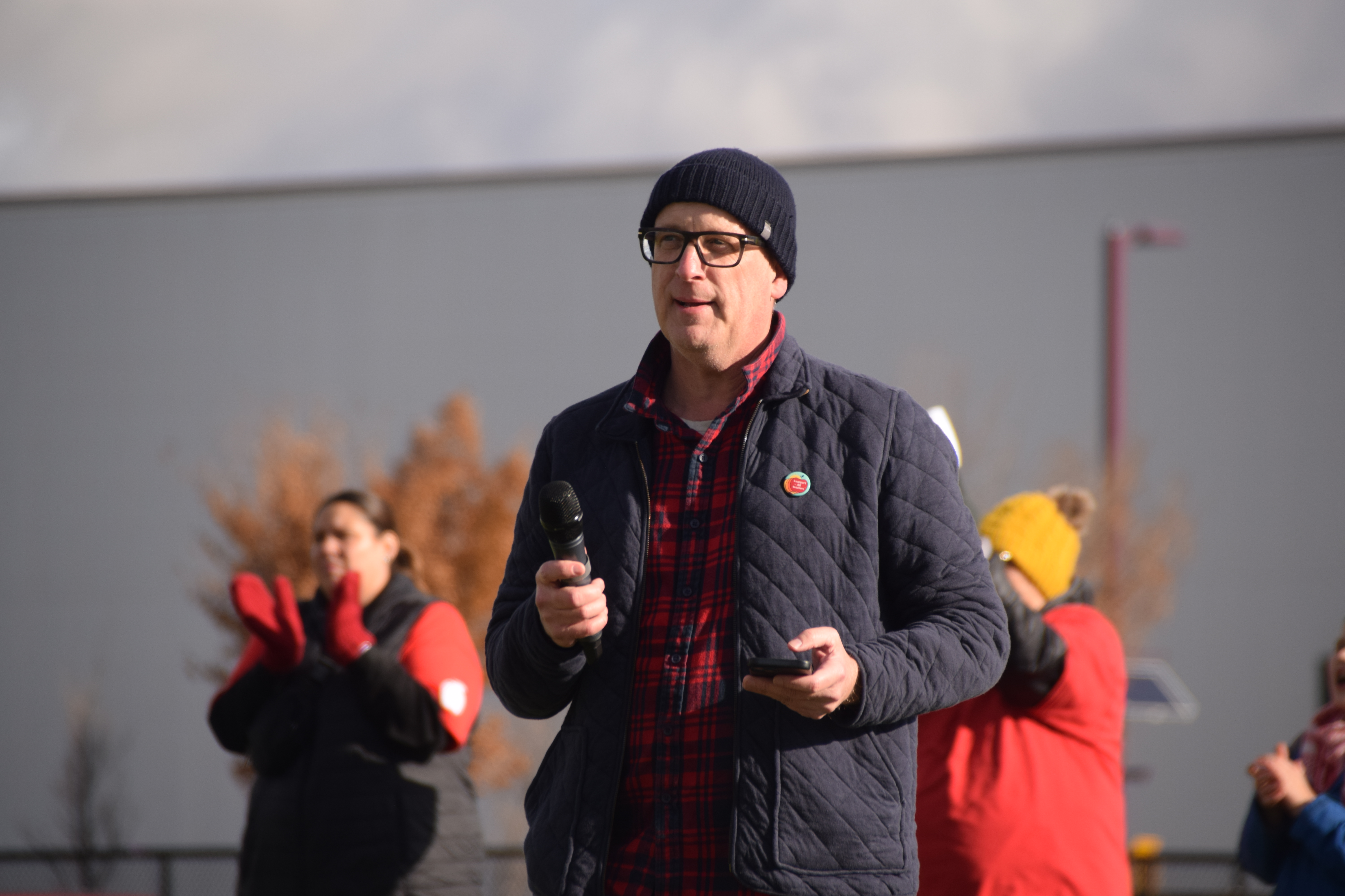 Photo by Erika Rolling.Attendees heard speeches by local teachers, parents, community members, as well as ATA President Jason Schilling headlining the rally to speak on the state of public education in the province.