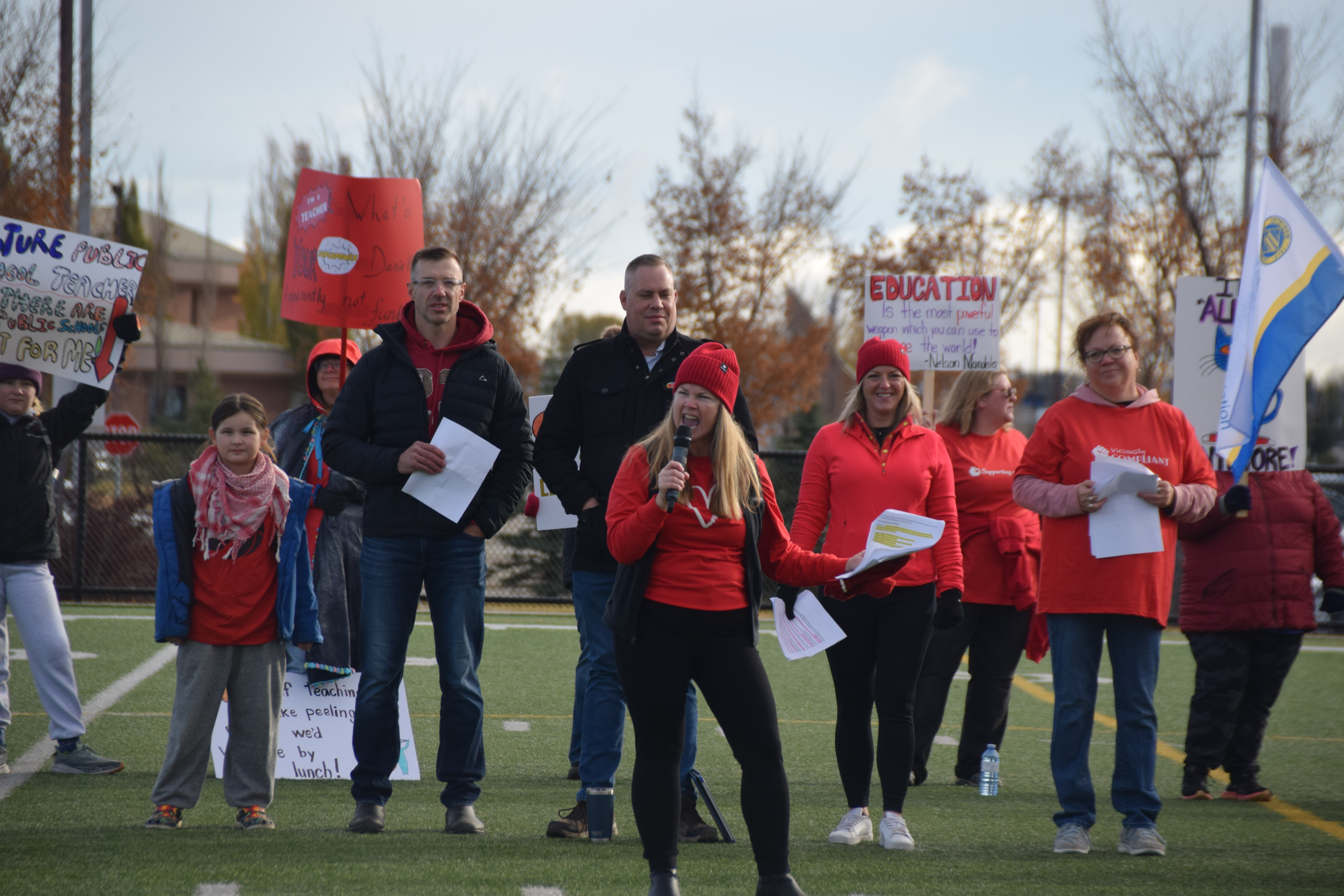 A sea of red filled the stands at Hansen Lincoln Field on Sunday (Oct. 19) with educators, Alberta Teachers’ Association union members, students, and community members alike supporting of the historic teachers strike in Alberta.