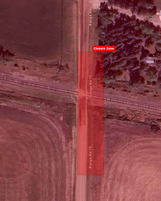 A portion of Range Road 75 will be closed for most of Thursday, Dec. 4 for construction work.