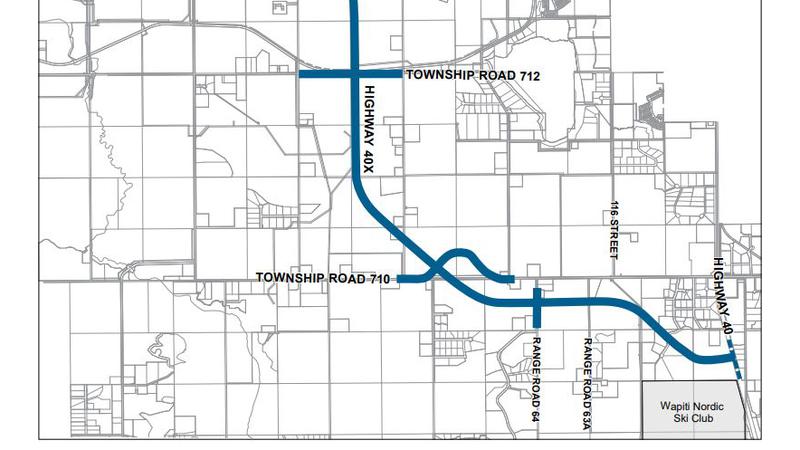 The road would connect Highway 43 to Highway 40. It would go south and east from where Highways 43 and 43X meet and link with Highway 40 just north of the Wapiti Nordic Ski Club