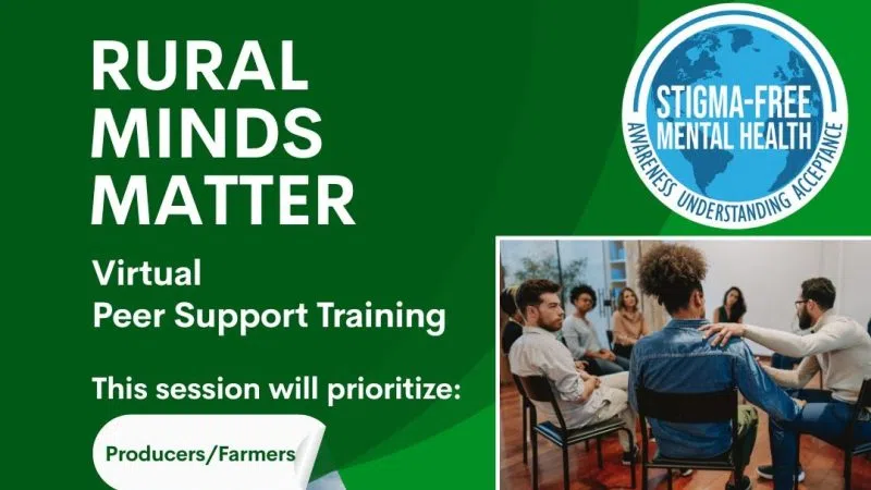An event called Rural Minds Matter Peer Support Training is set for January 24 and 25.This is online training that organizers say is "designed for rural residents, producers, and those who support farmers."Participants will learn how to run peer groups and share their personal experiencesRegistration and more...