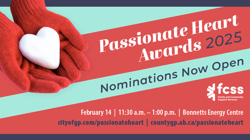 Family and Community Support Services is accepting nominations for their Annual Passionate Heart Awards.The awards recognize individuals and organizations in the City and County of Grande Prairie, as ...