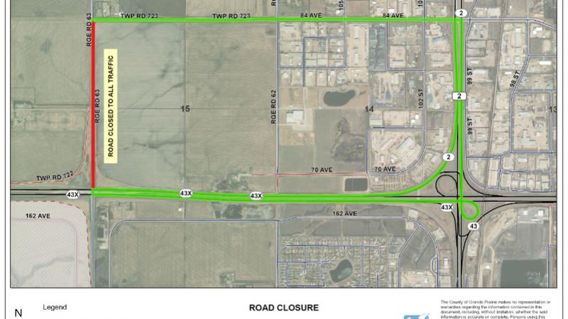 Range Road 63 closed for Thursday between Highway 43X and 84th avenue in Clairmont
