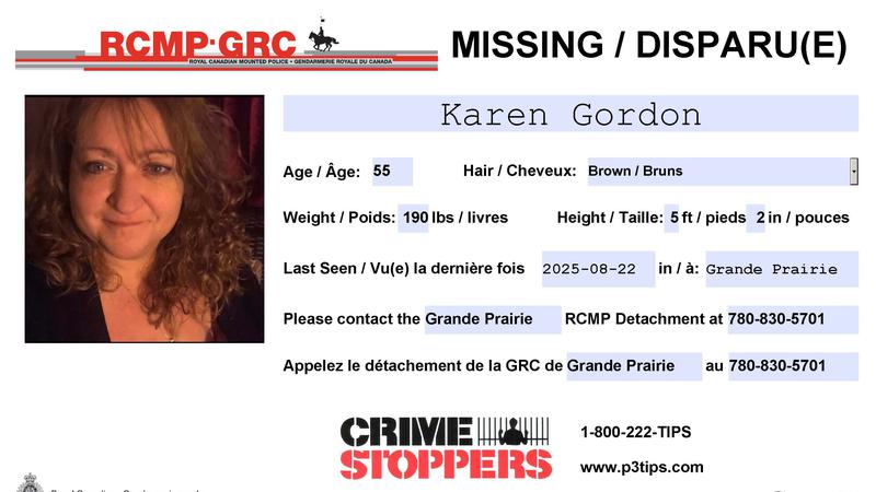 Update on Monday August 25, 2025 - Grande Prairie RCMP is advising that Karen Gordon was located safe. -------------------Mounties in Grande Prairie are requesting the public's assistance in finding 5...