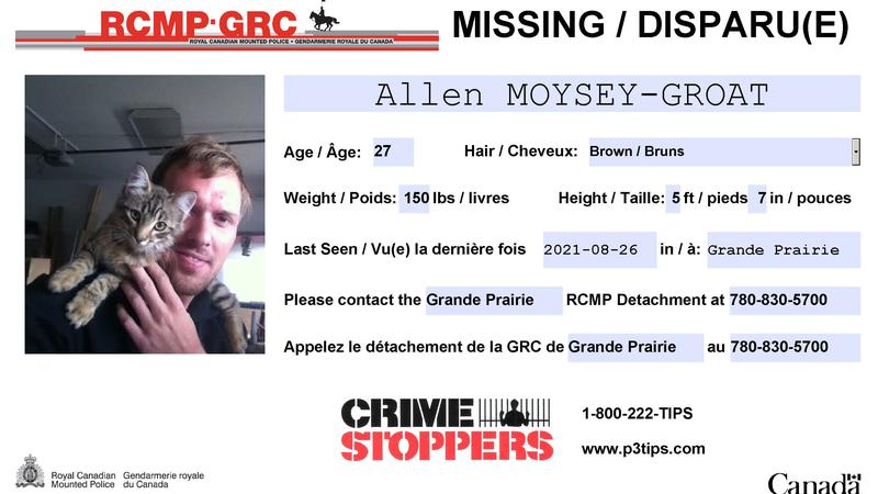 UPDATE: Grande Prairie RCMP say Allen Moysey-Groat has been located safe. They thank the public for their assistance.--------------Grande Prairie RCMP are seeking the public's help in locating 27-year...