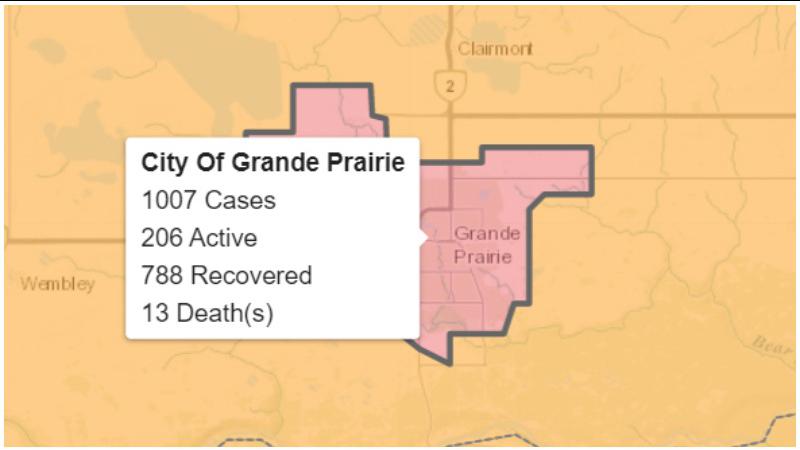 The thirteenth death linked to COVID-19 has been recorded in the City of Grande Prairie.The death was one of 15 reported by Alberta Health on Saturday, and was a female in her 50's which occurred on J...