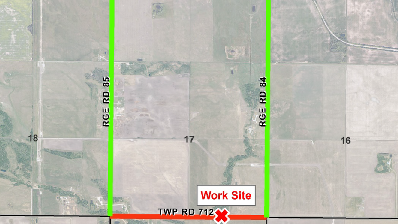 The County of Grande Prairie says that starting on September 24, Township Road 712 from Range Road 84 to Range Road 85 just west of Wembley will be closed for a bridge culvert replacement. Drivers hea...