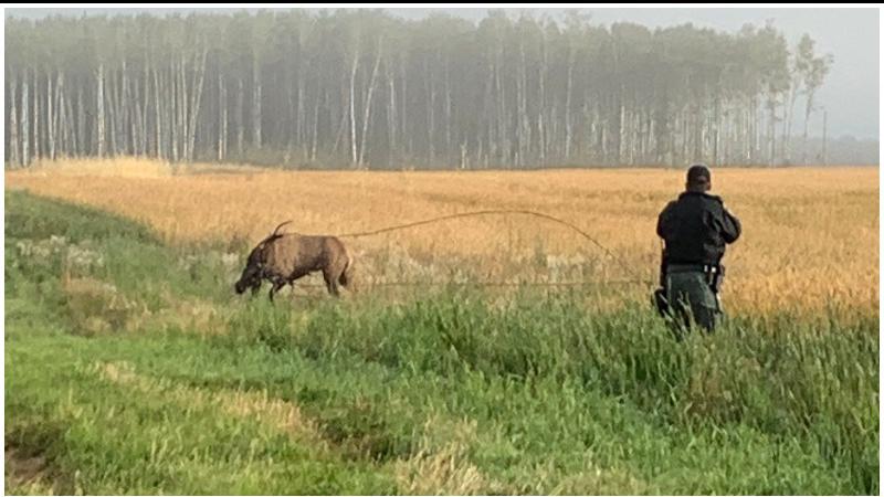 Grande Prairie Fish and Wildlife help free elk stuck in hundreds of feet of wire
