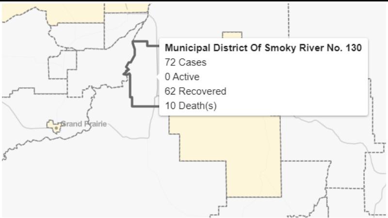 The M.D. of Smoky River area returned to zero active cases of COVID-19 on Wednesday, as the province added 46 new cases.In the Peace Region, there remains one active case in the City of Grande Prairie...