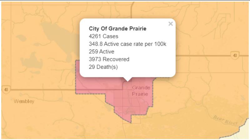 45 new cases of COVID-19, 13 recoveries recorded in Grande Prairie