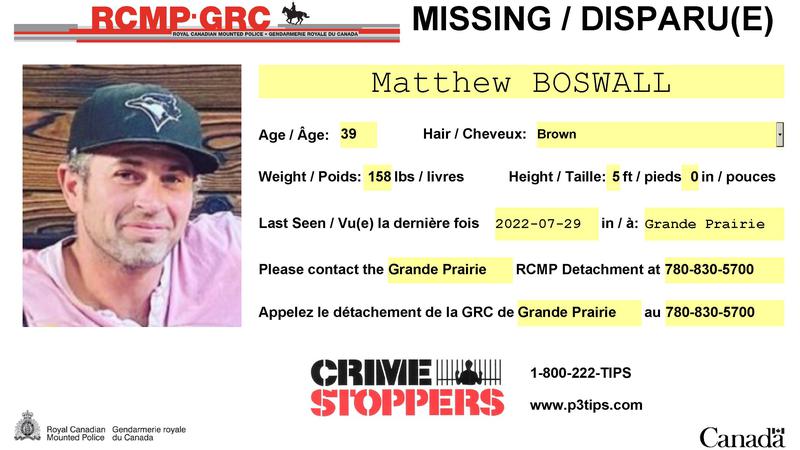 Update:The Grande Prairie RCMP is happy to report Matthew Boswall has been located and is safe.Mounties would like to thank the public for their assistance with this case.The Grande Prairie RCMP are s...