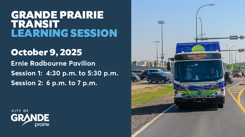 Residents wanting to learn more about how the City of Grande Prairie's transit system works are invited to attend one of two learning sessions tonight (Thursday, October 9) at the Ernie Radbourne Pavi...