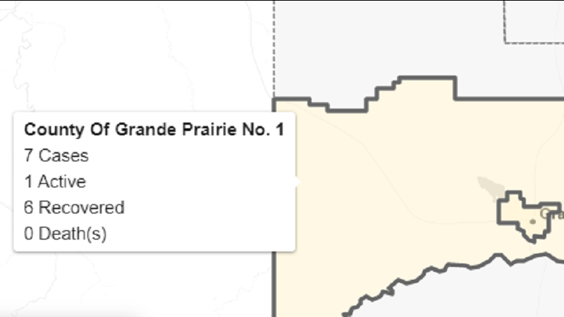 The province has confirmed one new active case of COVID-19 in the County of Grande Prairie in the last 48 hours, bringing the total number of cases to seven, with six recovered and one active. Two pre...